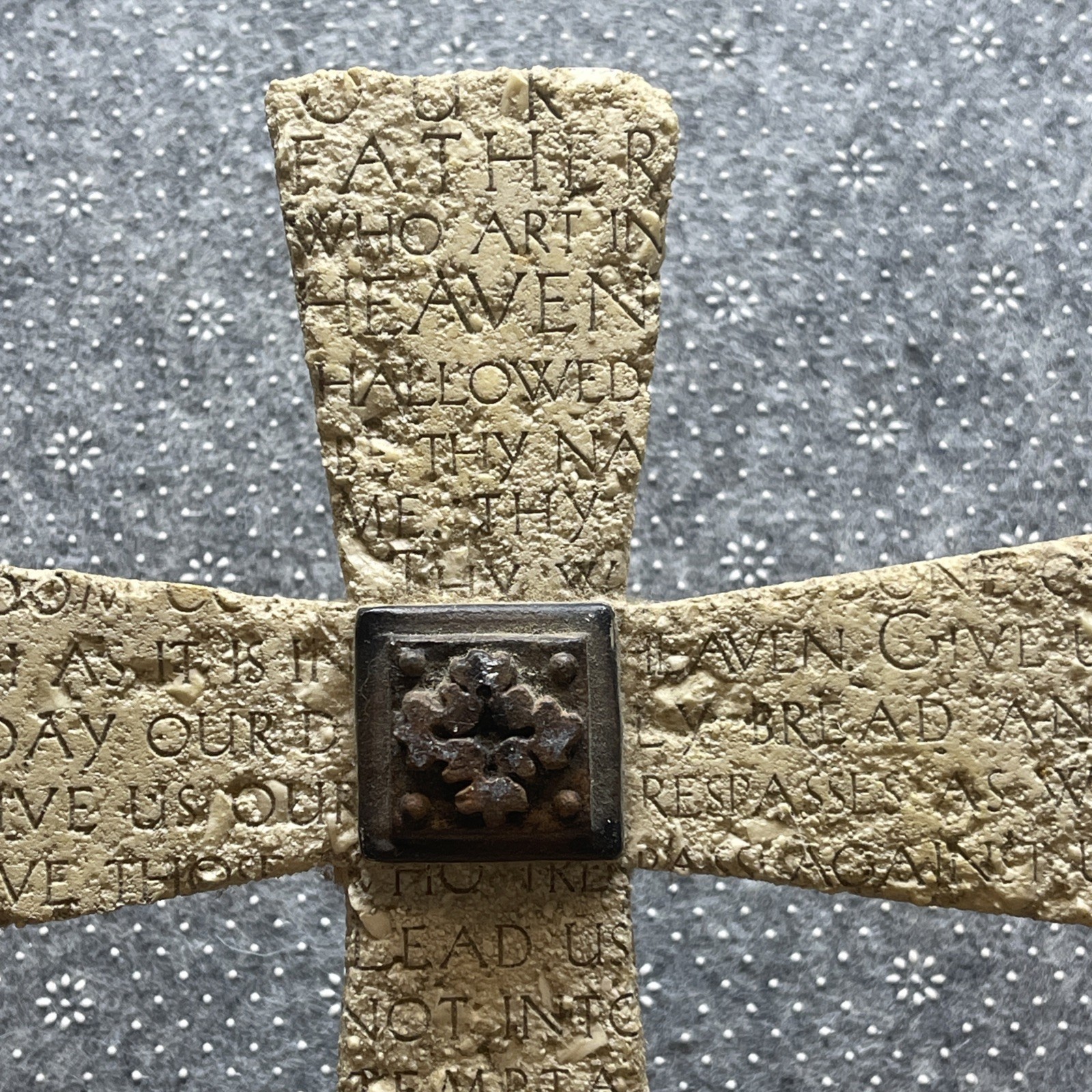 - Vintage engrave 1998 stone resin wall cross “Lord’s prayer” SH