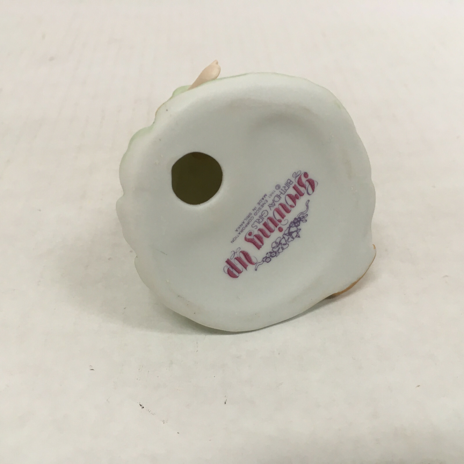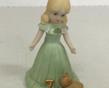 - Vintage growing up Birthday girl figurine age 7 blonde hair green dress pink bow