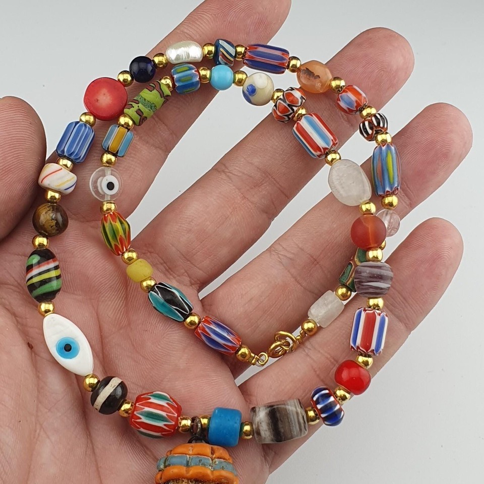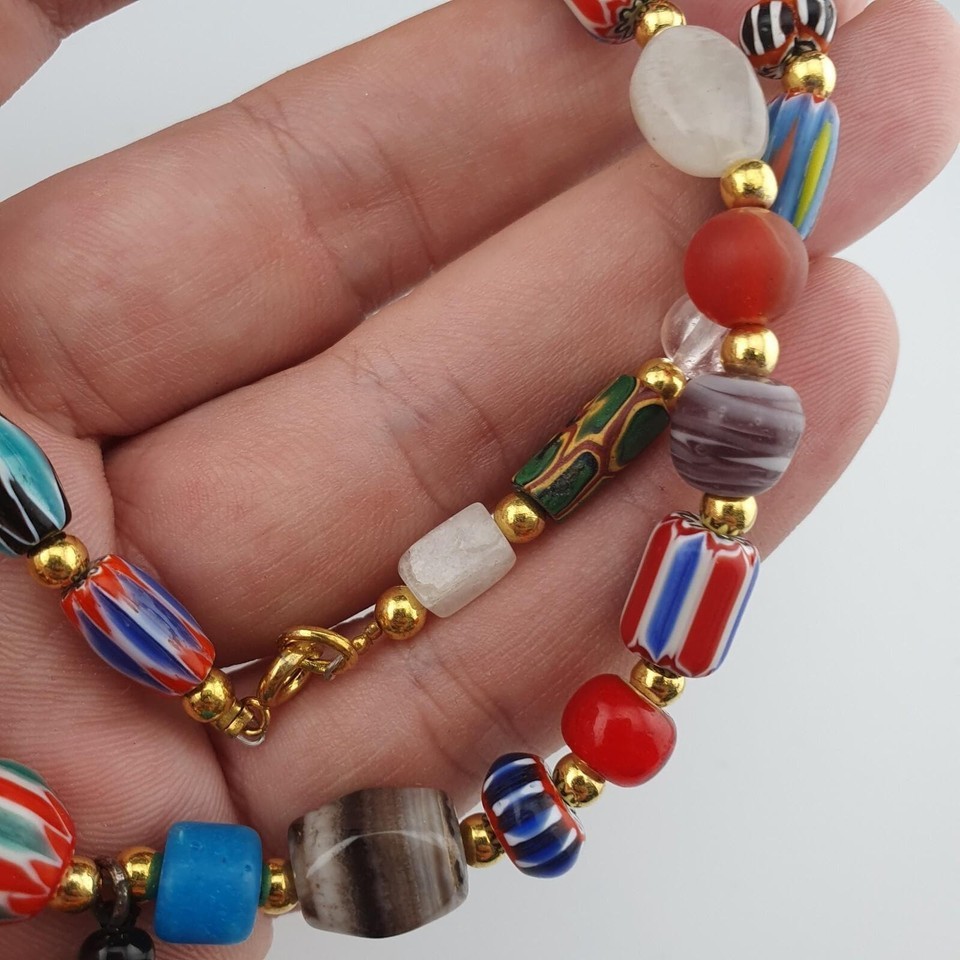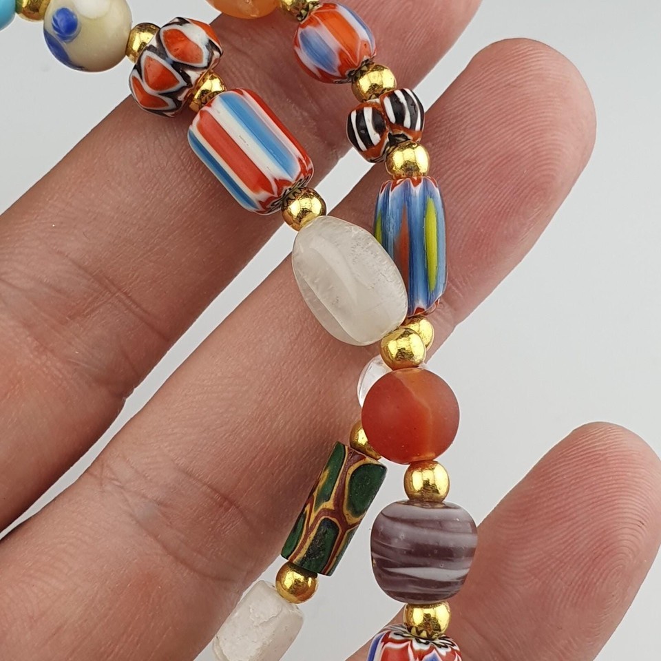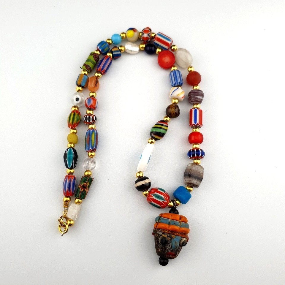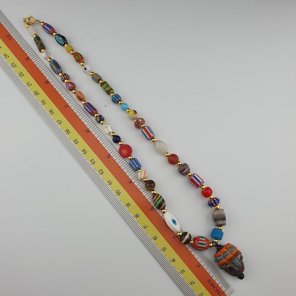 - Vintage hecho a mano cara mezcla de cuentas chevron vidrio collar de cuentas ...