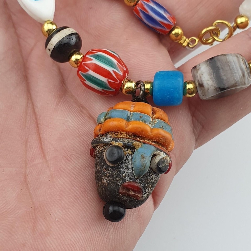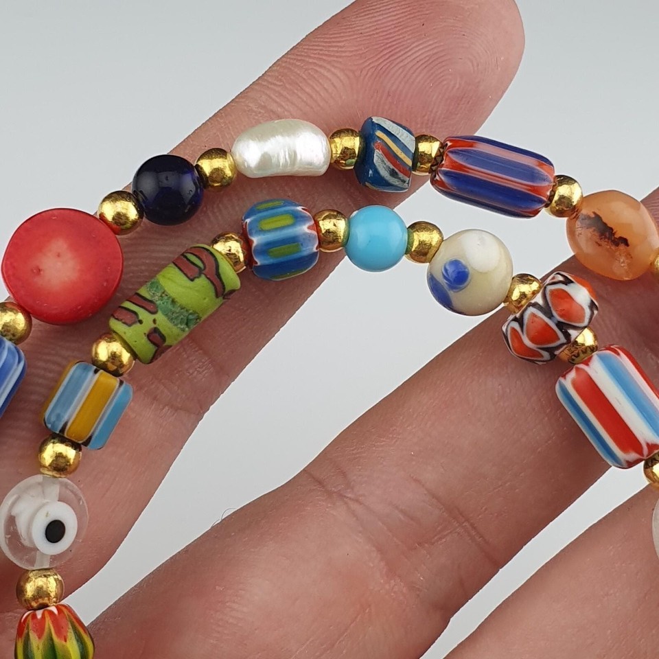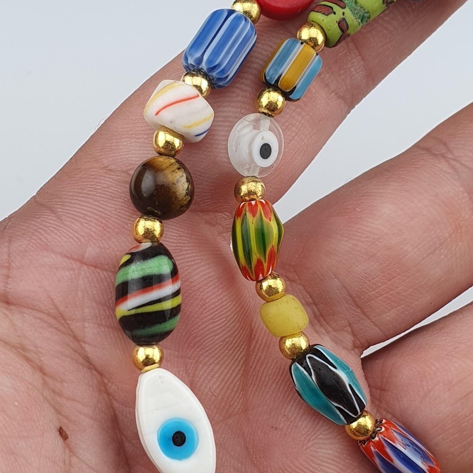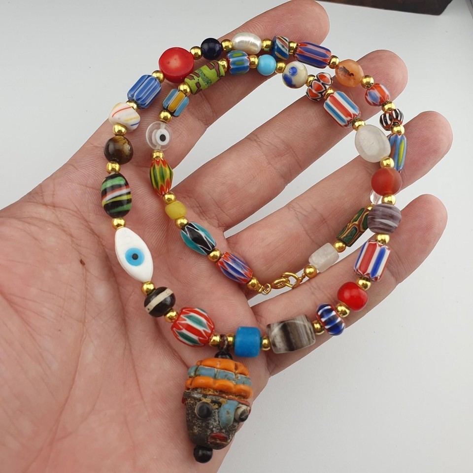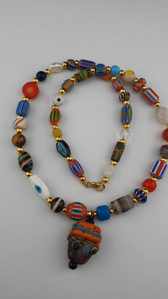 - Vintage hecho a mano cara mezcla de cuentas chevron vidrio collar de cuentas ...