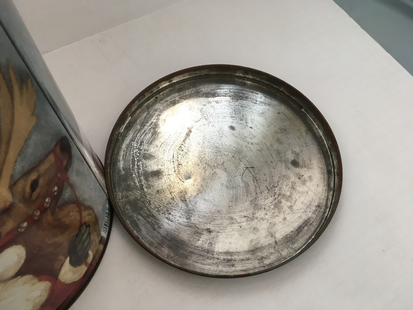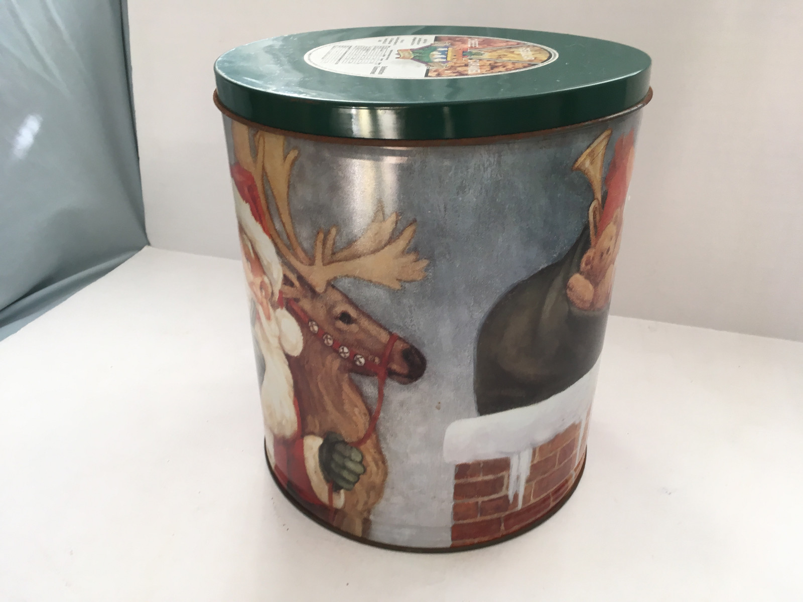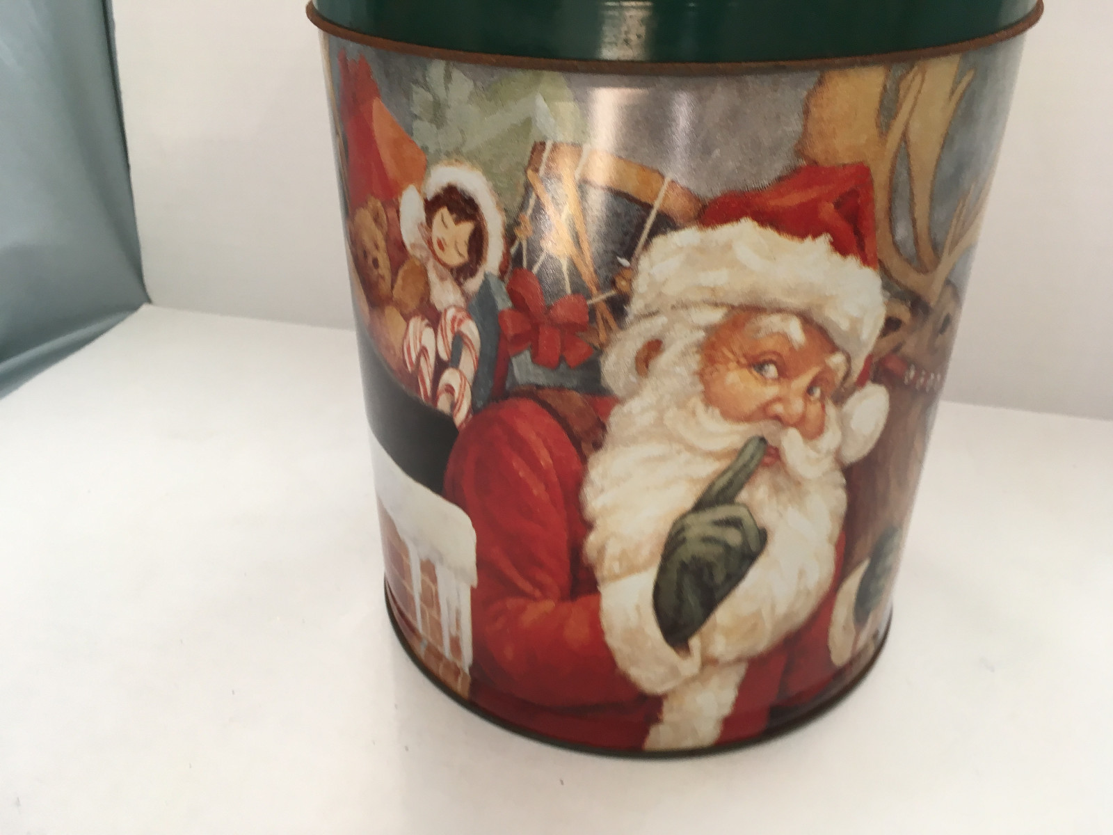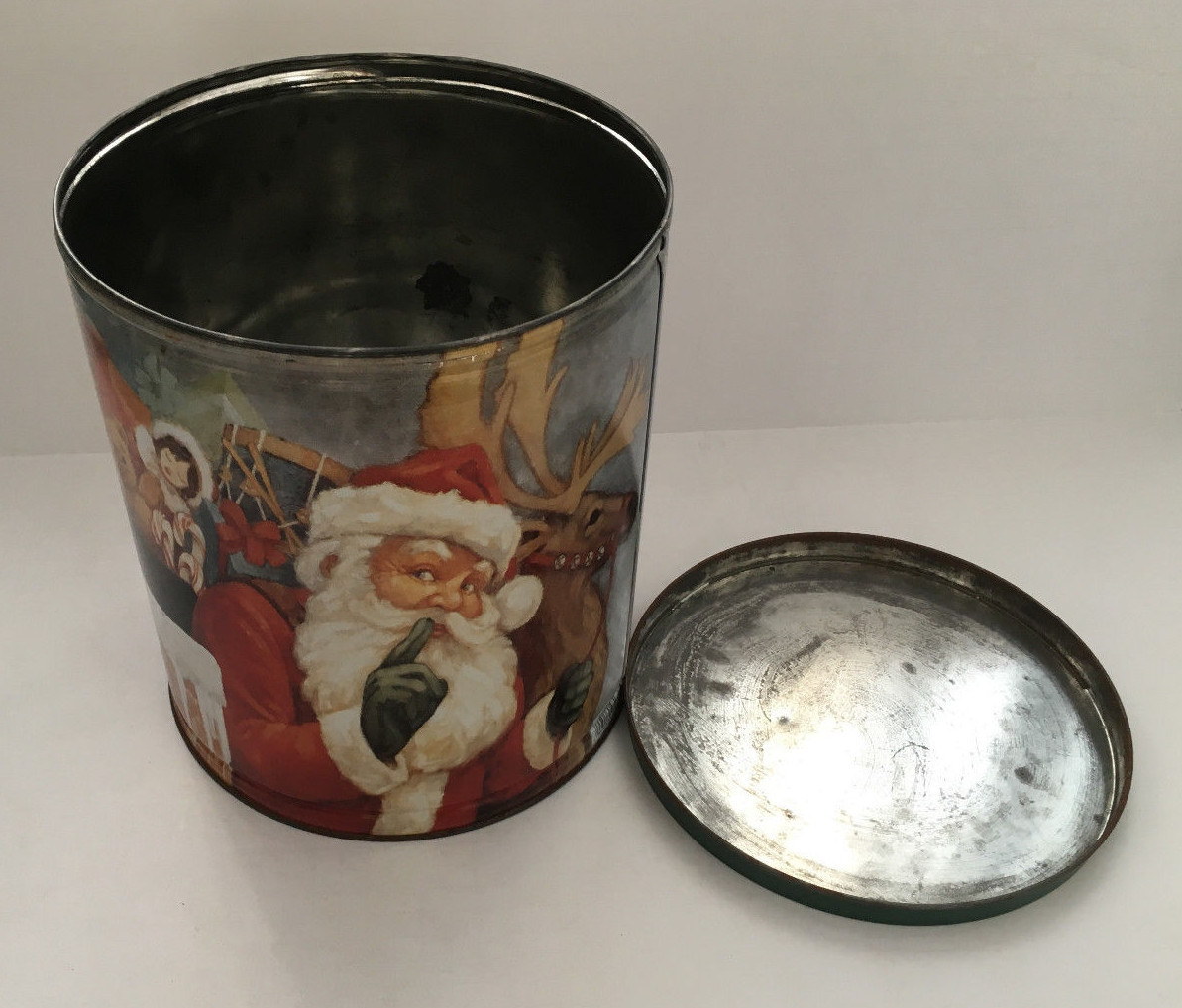 Vintage large sneaking santa graphics shucks popcorn tin hallmark cards 1991