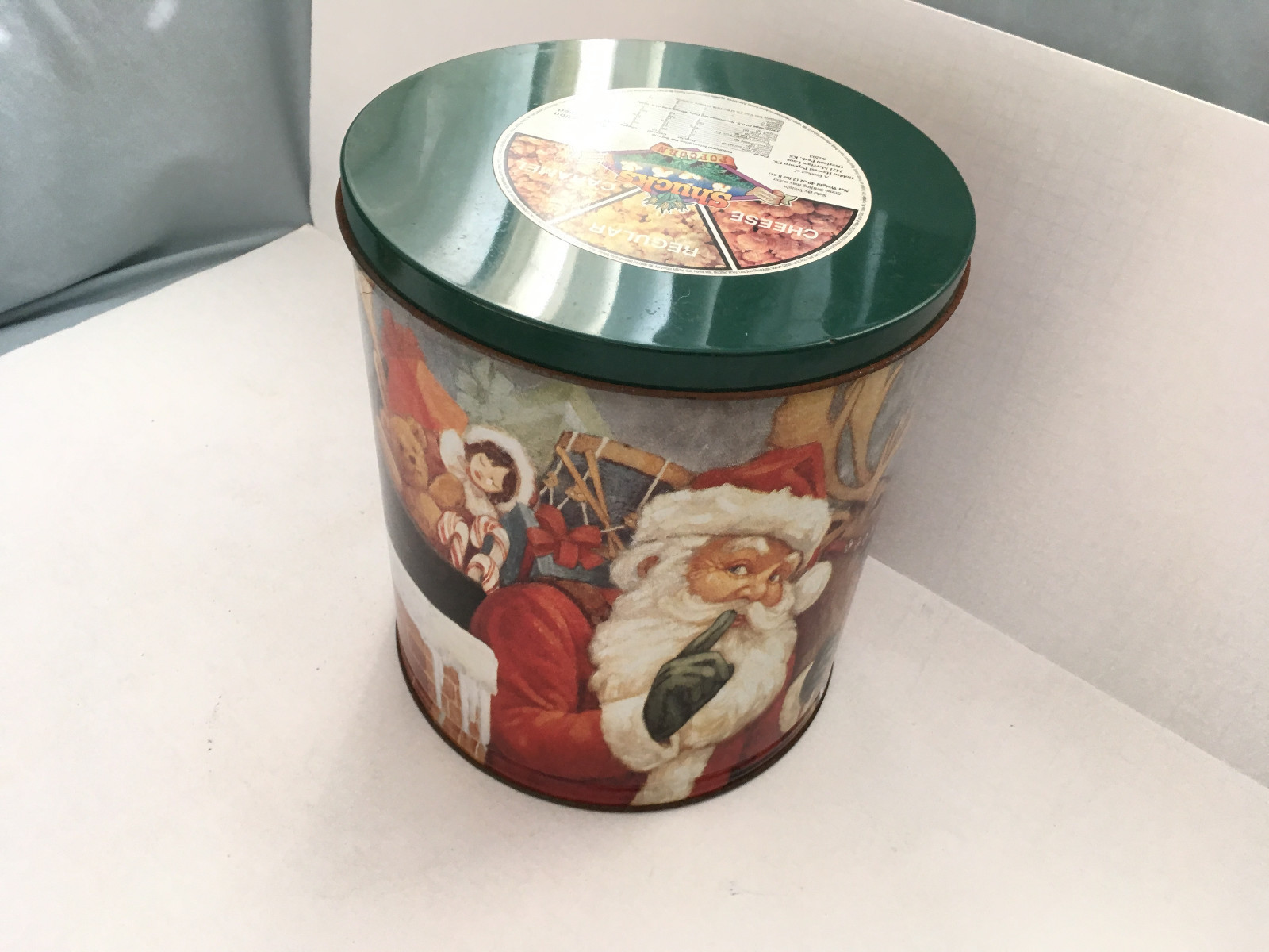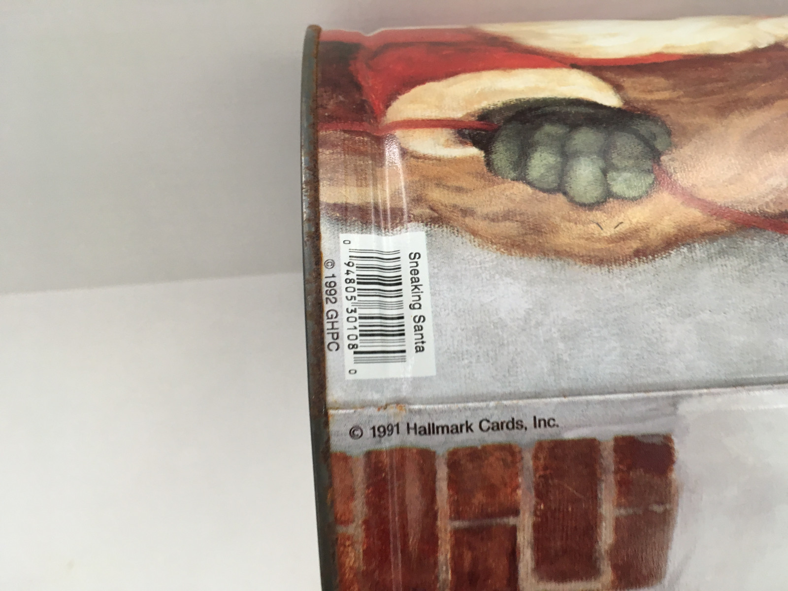 - Vintage large sneaking santa graphics shucks popcorn tin hallmark cards 1991