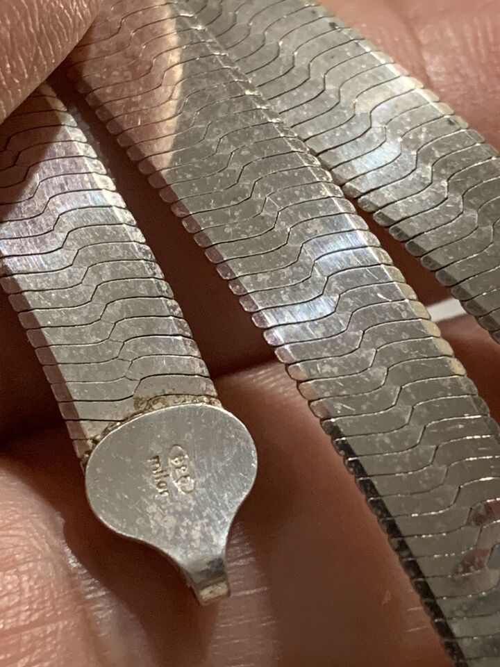 - Vintage marked Milor 925 Italy sterling silver flat snake chain necklace 24"