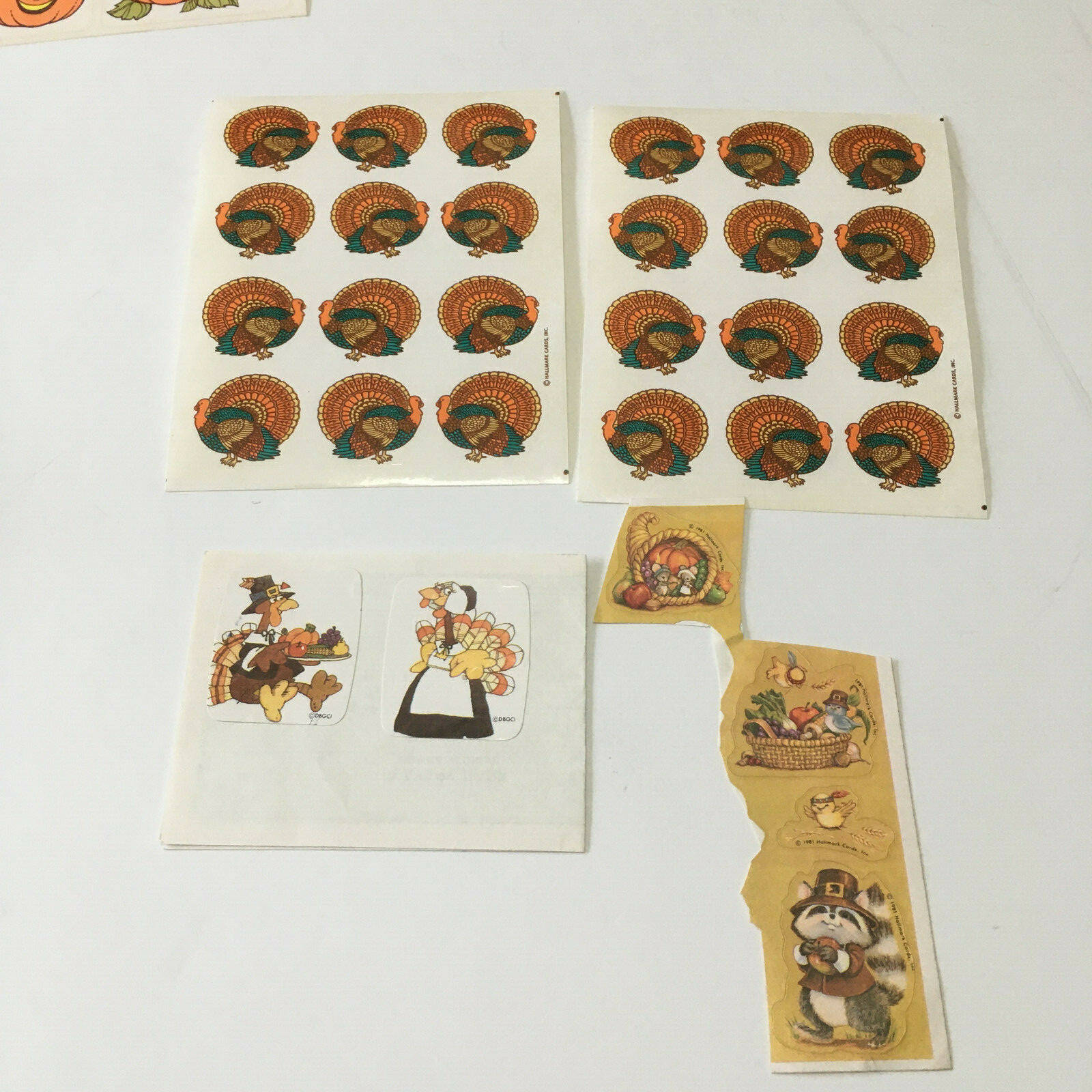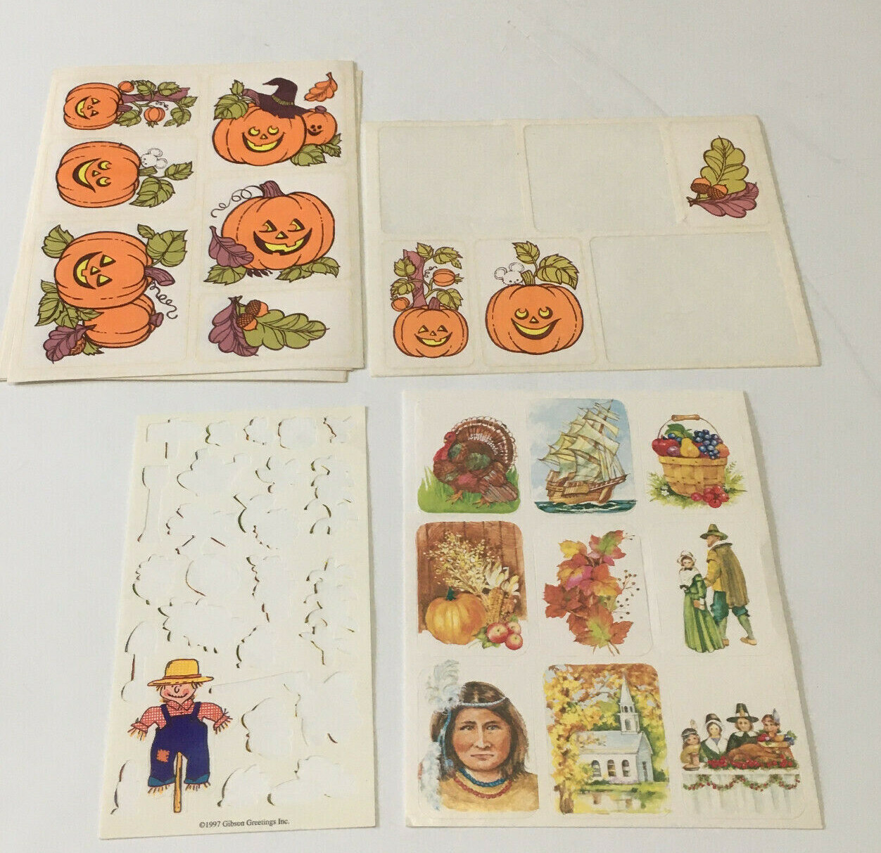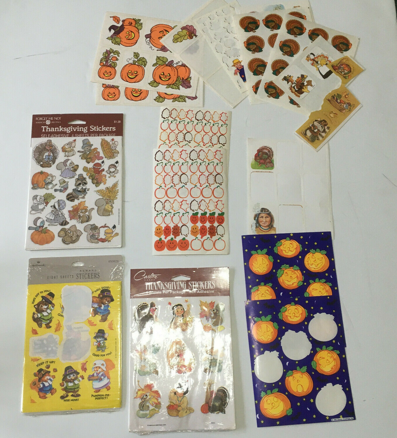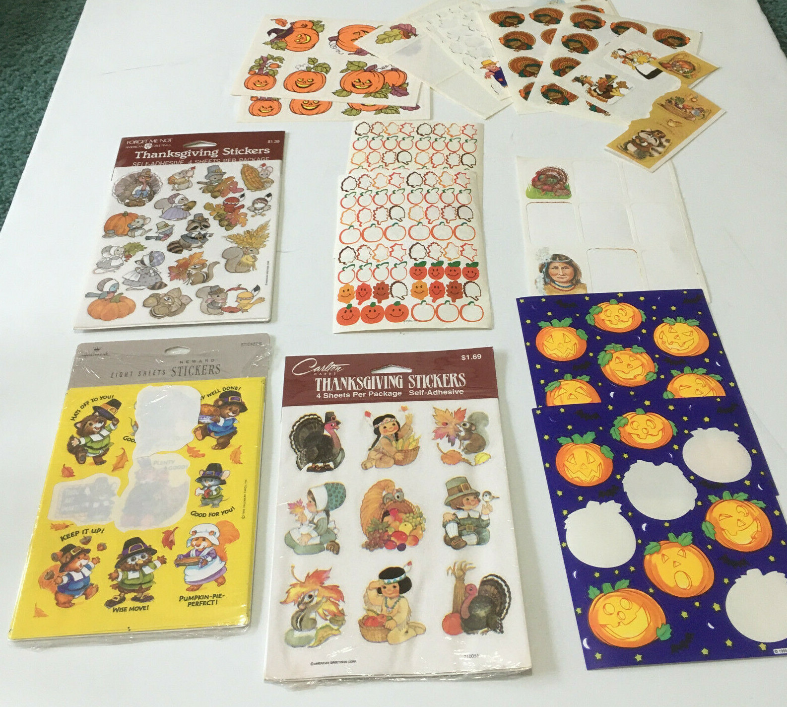 - Vintage mixed Thanksgiving fall sticker lot pumpkins turkey scarecrow pilgrims