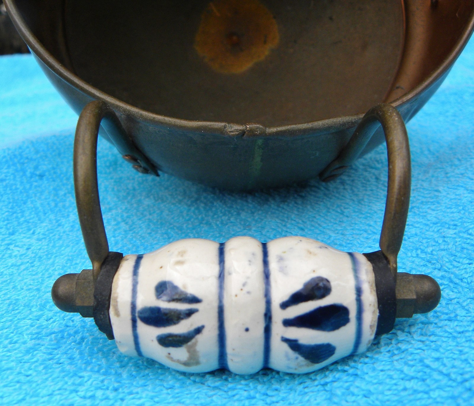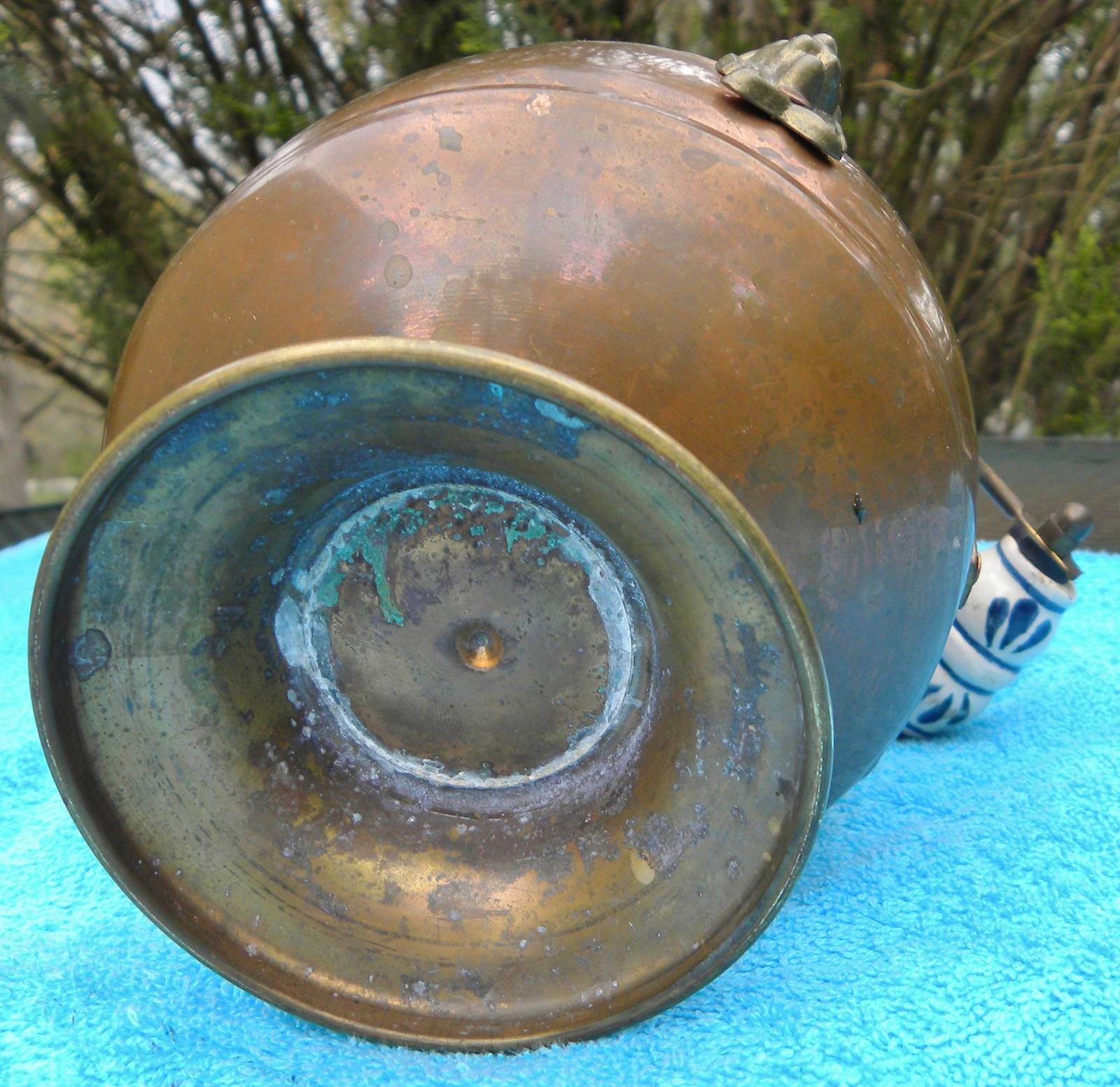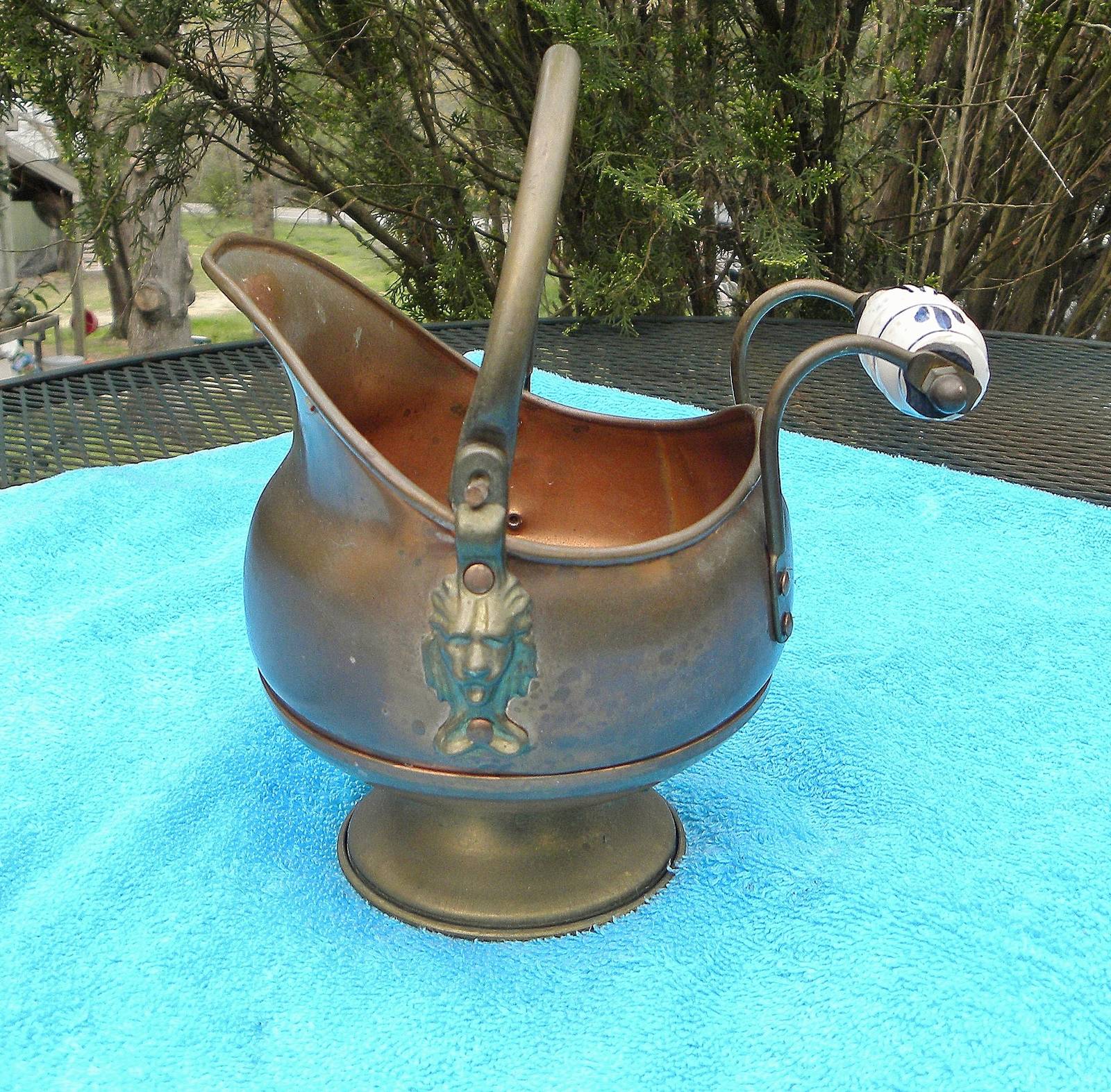 - Vintage oxidized COPPER Coal scuttle POT w/DELFT handle Country Living 5" bucket