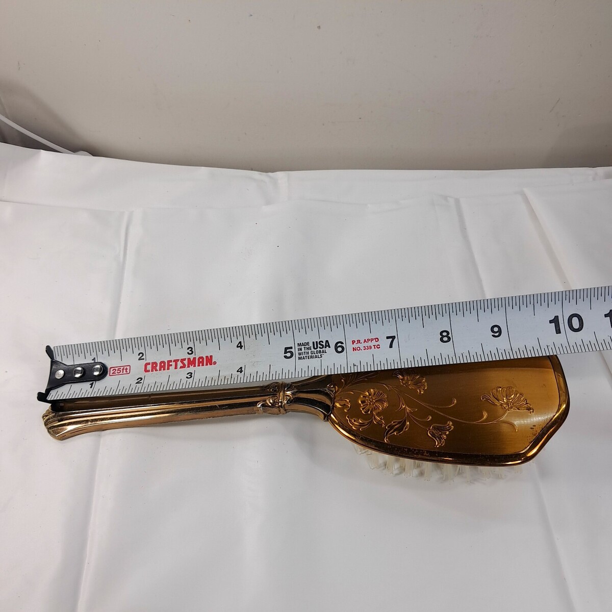Vintage vanity hair brush gold tone floral flowers embossed art deco Nouveau