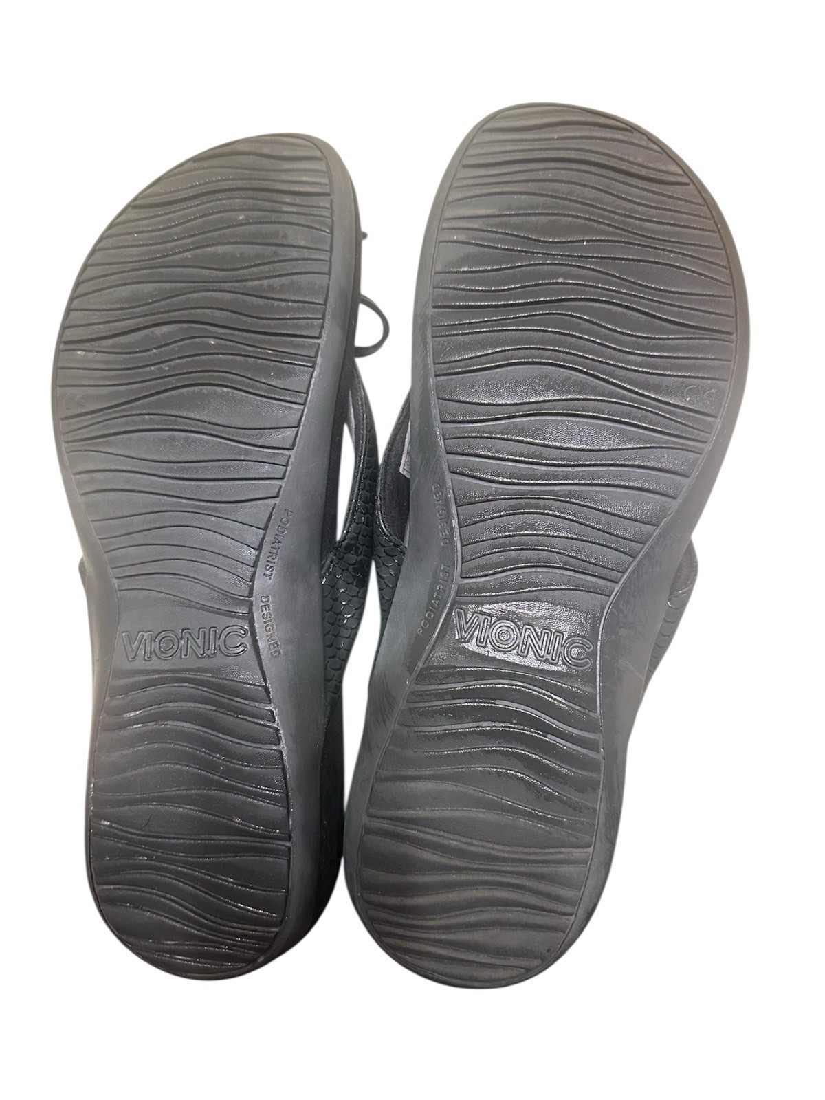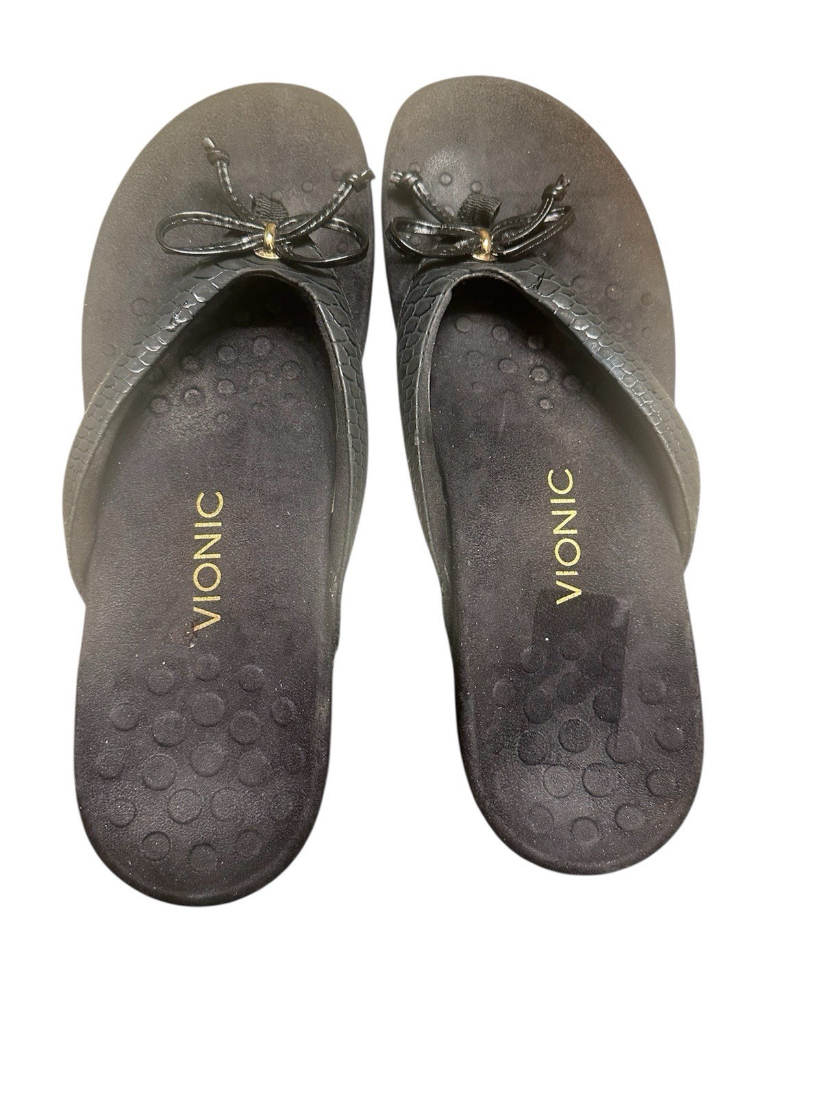 Vionic Sandals Women 10 Orthaheel Bella II Black Snake bow-tie orthotic thong. Condition is Pre-owned. Shipped with USPS Ground Advantage.