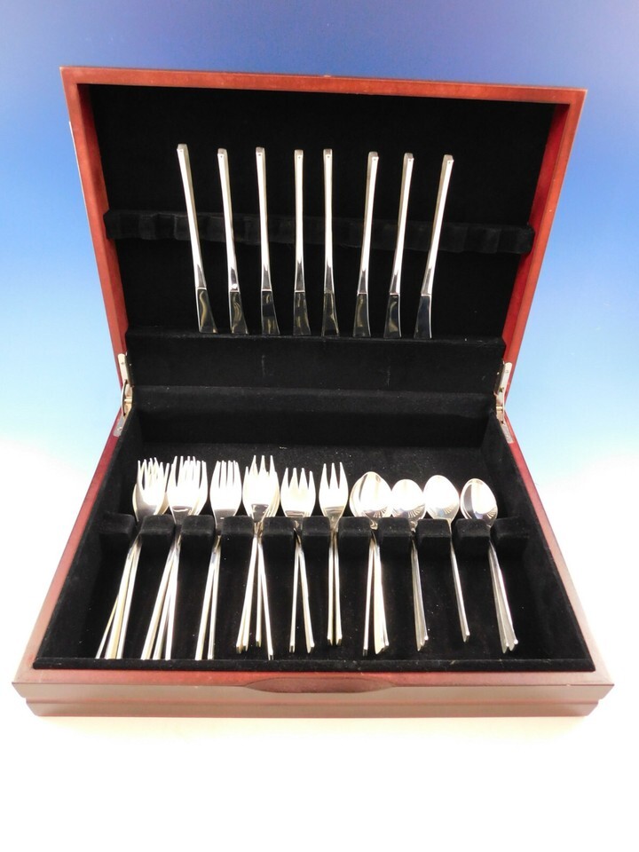 Mid-Century Modern sterling silver flatware set in the highly collectible "Vision" pattern, designed by Ronald Hayes Pearson - 32 pieces. This set includes: