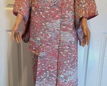 VINTAGE Visiting Komon kimono, crepe, floral and landscape pattern, pink, multicolor, wide collar, pure silk, casual, length 62.2", great condition