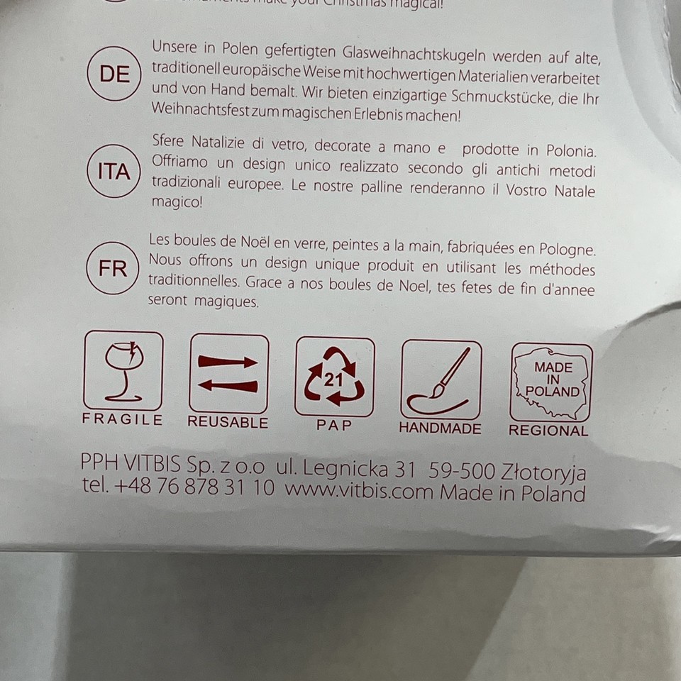 - Vitbis Jumbo Christmas Glass Christmas Ornament Poland Szklane Ozdoby Choinkowe