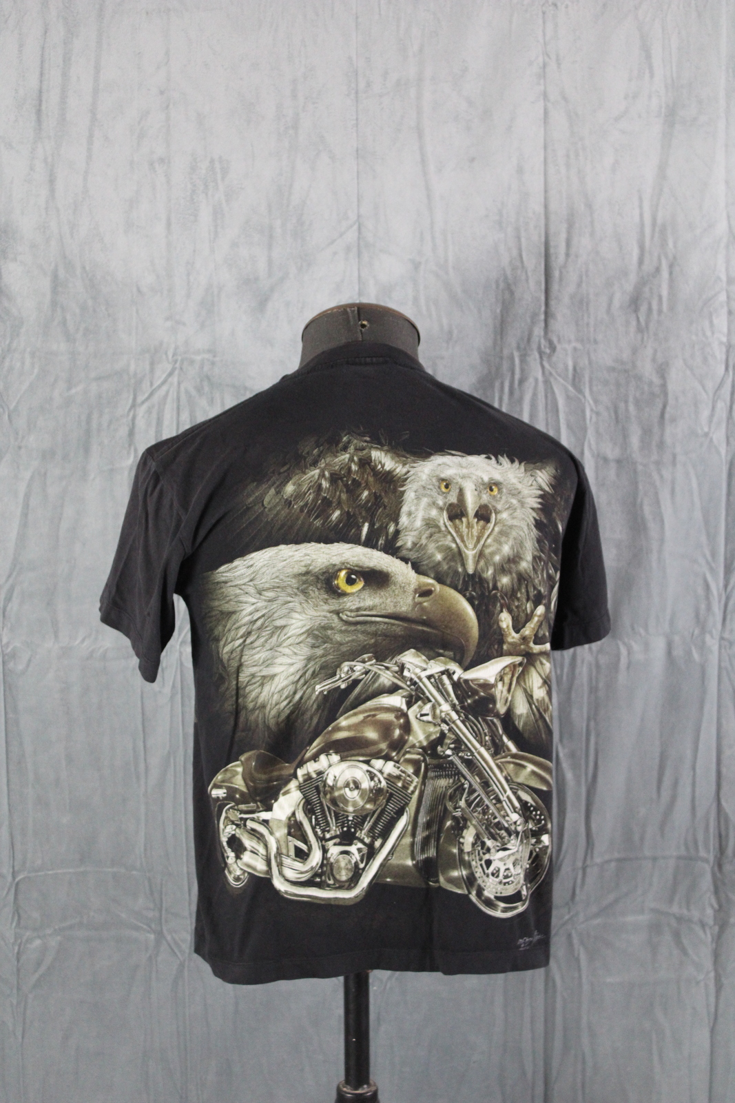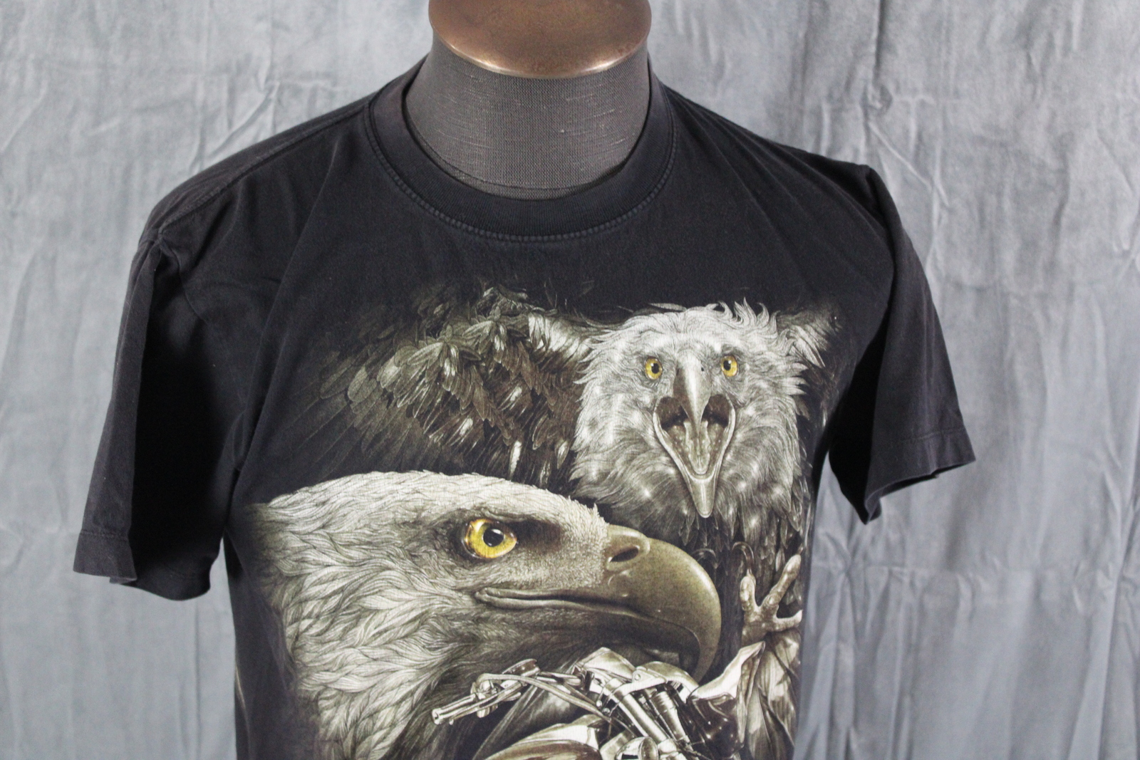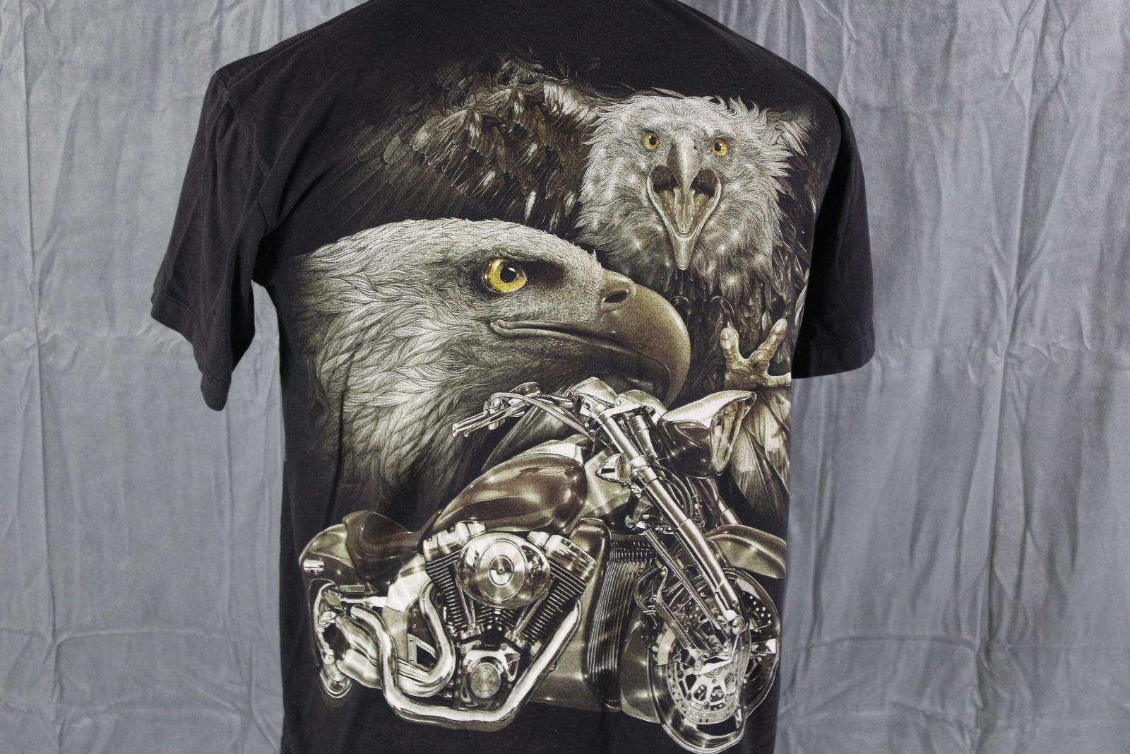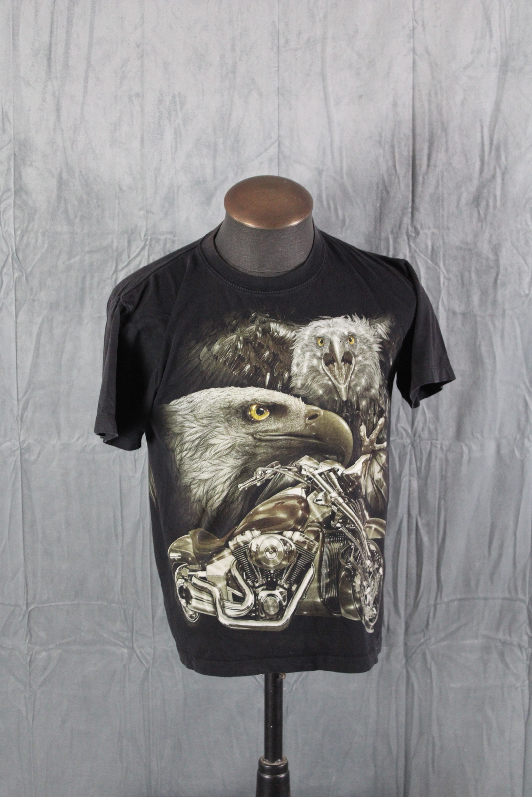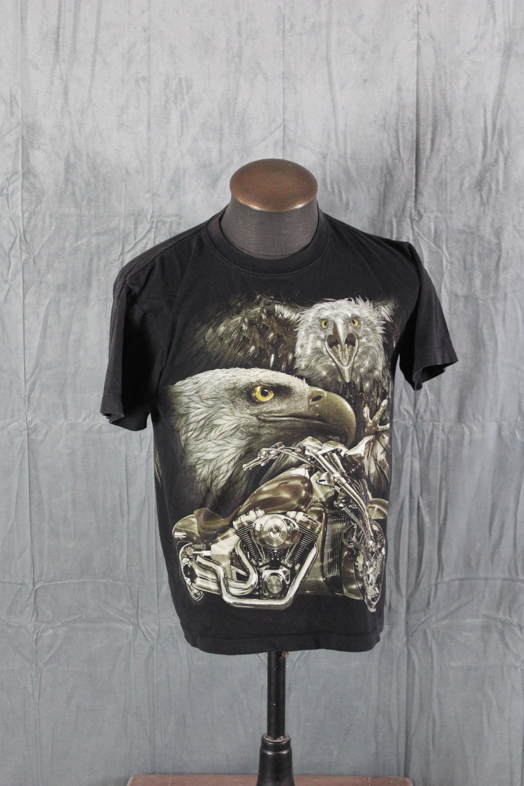 - Vitnage Graphic T-shirt Bald Eagle Mortocycle Graphic Rock Chang - Men's Meidum