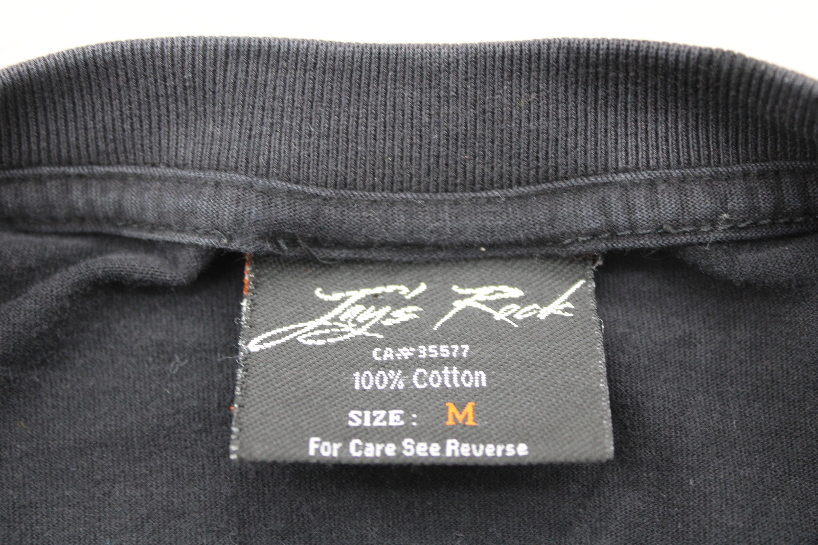 Up for slae is a vintage Rock Chang graphic t-shirt. It has a black base colour with a graphic of 2 bald eagles with a motorcycle screened on both the front and back of the shirt. What a great shirt do not miss out on it.