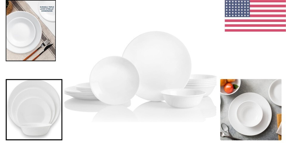 - Vitrelle 18-Piece Winter Frost White Dinnerware Set - Chip Resistant & Elegant