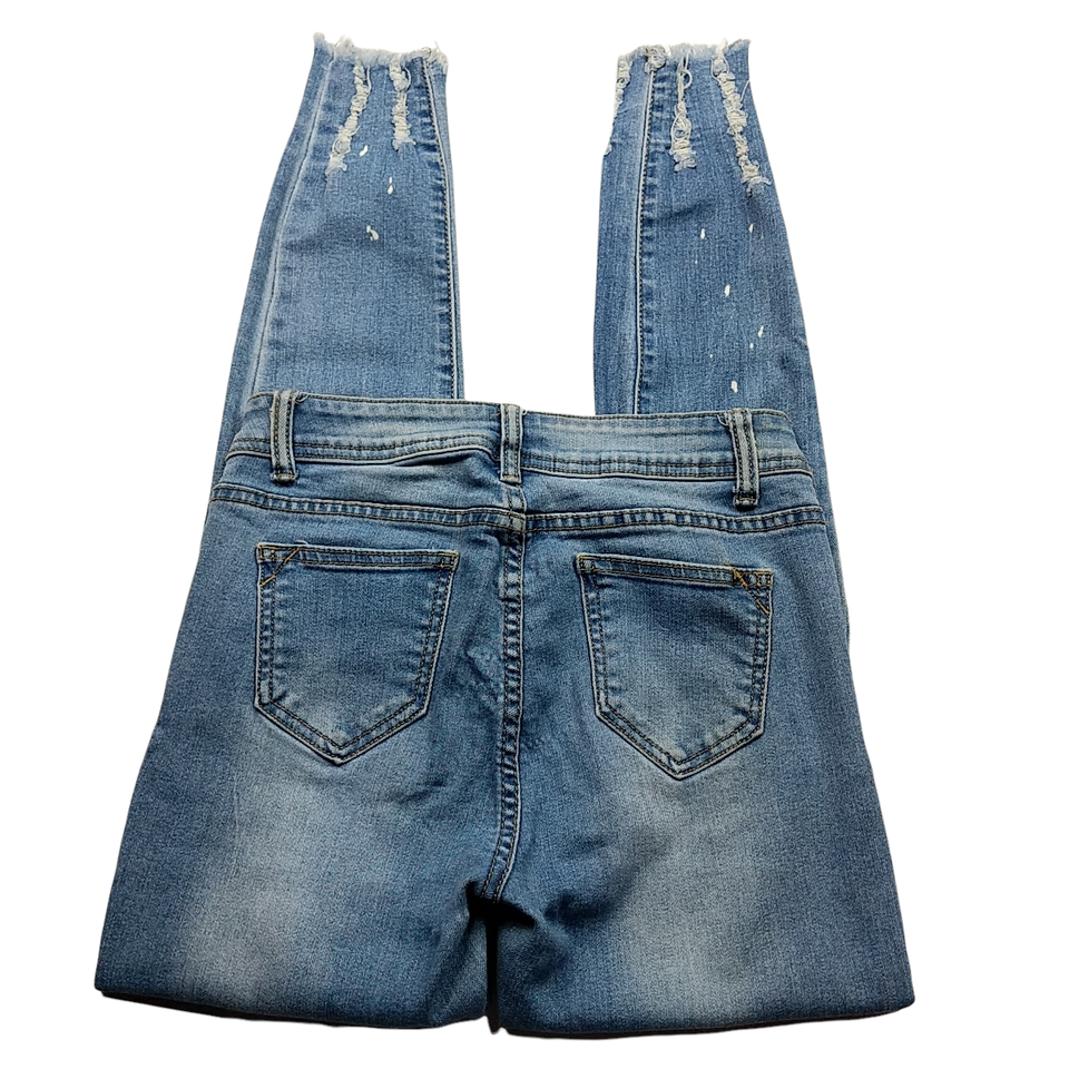 Vivid Womens Skinny Jeans Small/36 Medium Wash Denim Distressed Raw Hem Flecked