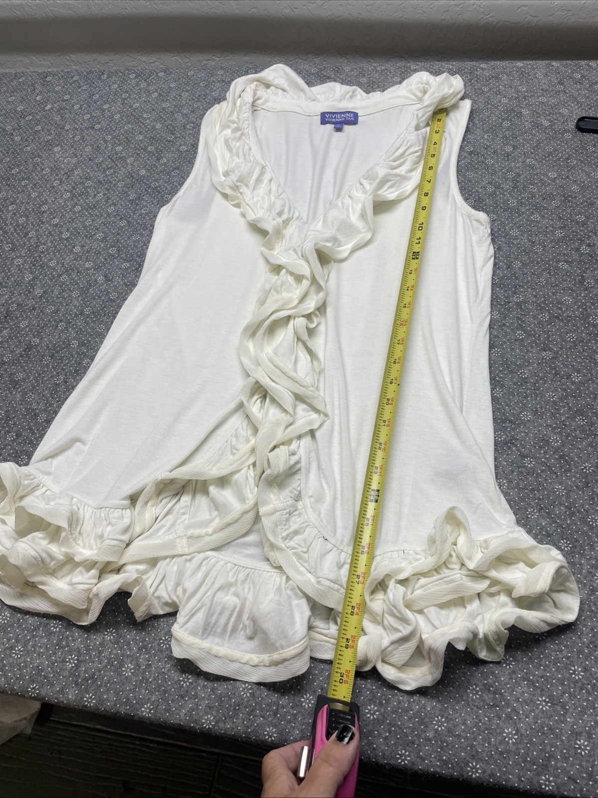 - Vivienne Tam White Ruffle Trim Button Front Sleeveless Blouse Size XL BBL JD