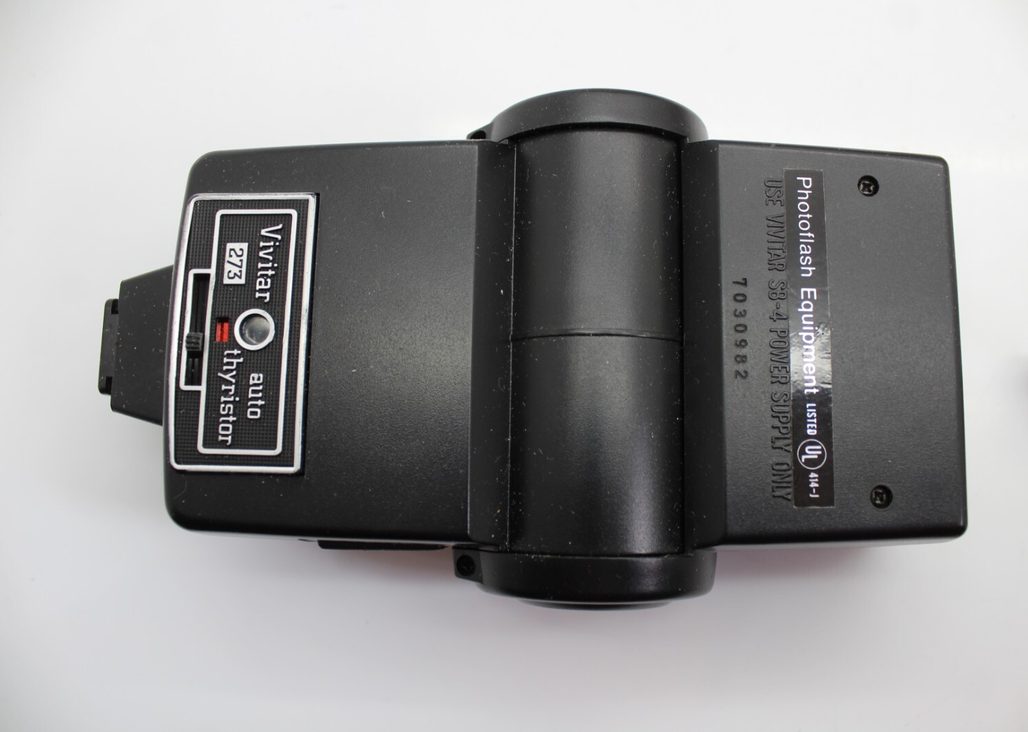 This Vivitar Auto Thyristor Model 273 is a versatile and reliable lighting accessory, ideal for photographers seeking precise control over their lighting conditions. Manufactured in Japan, it comes with a convenient 10-foot extension cord, allowing for greater mobility and more creative lighting setups.