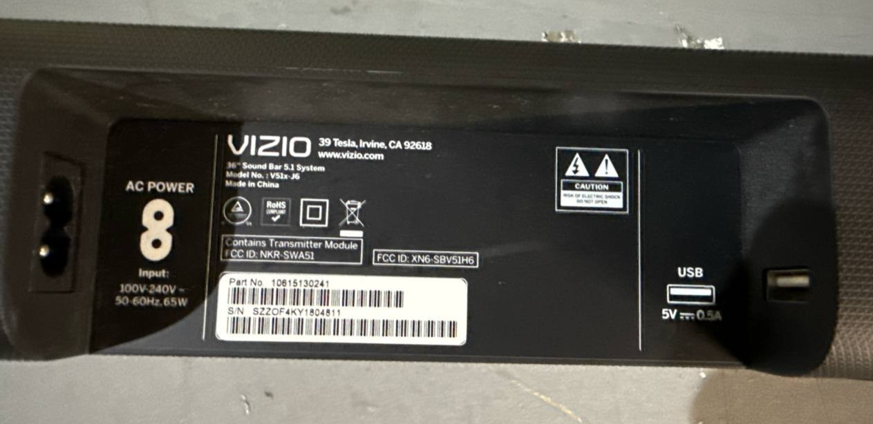 - Vizio V51x-J6 5.1 Channel Soundbar Home Theater System Bluetooth HDMI ARC 100W