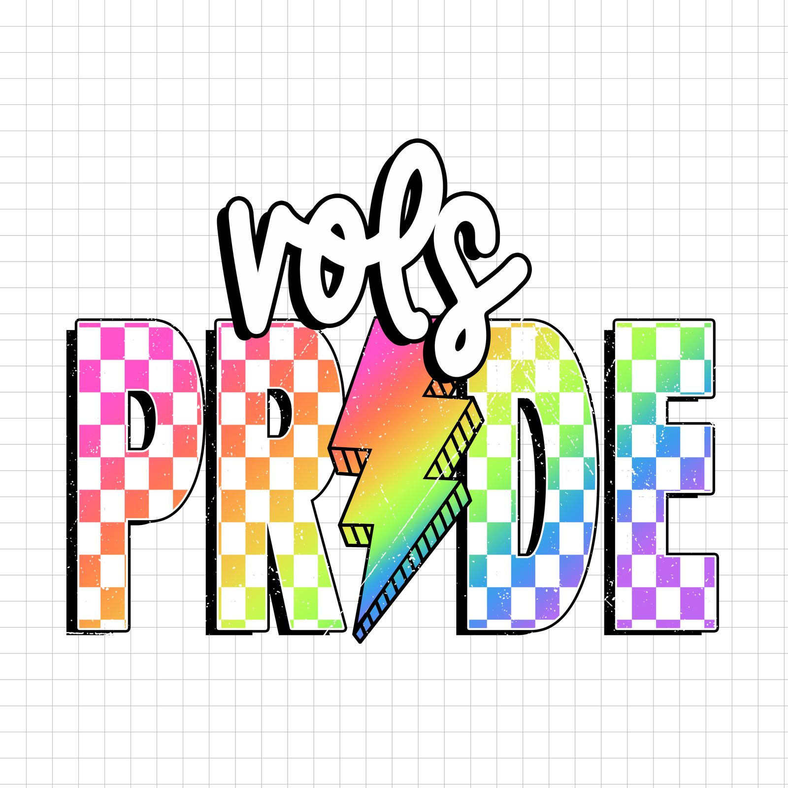 Vols Pride PNG, Checkered Vols PNG, Lightning Bolt Design, Neon Mascot PNG, Trending Design