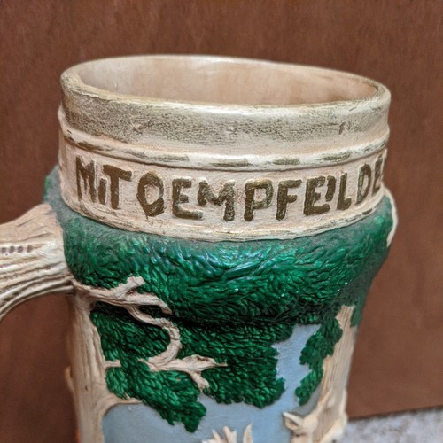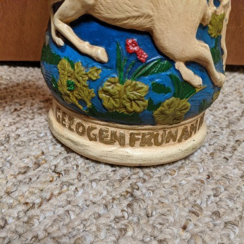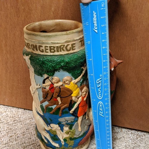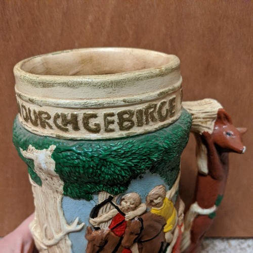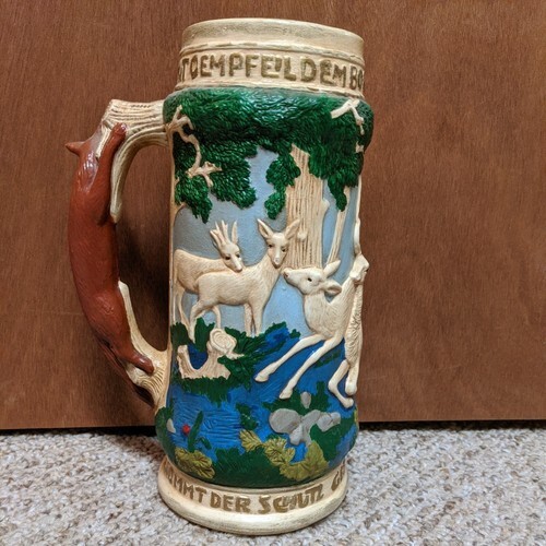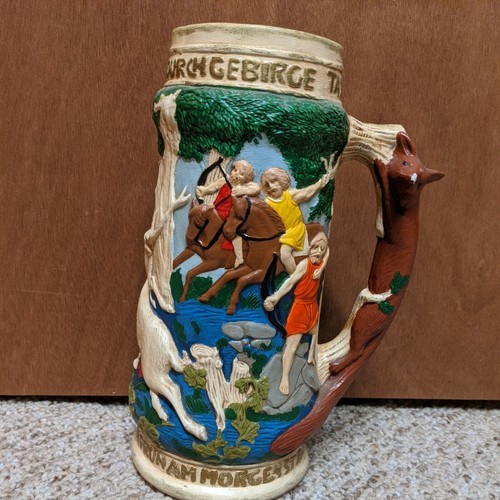 - Vtg 11" Ceramic German Mug Stein Men Hunt White Deer With Bows