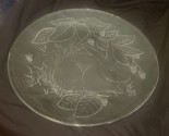 Vtg 13" Clear Glass Plate Etched Rabbit Bunny Berry Design Decorative Display