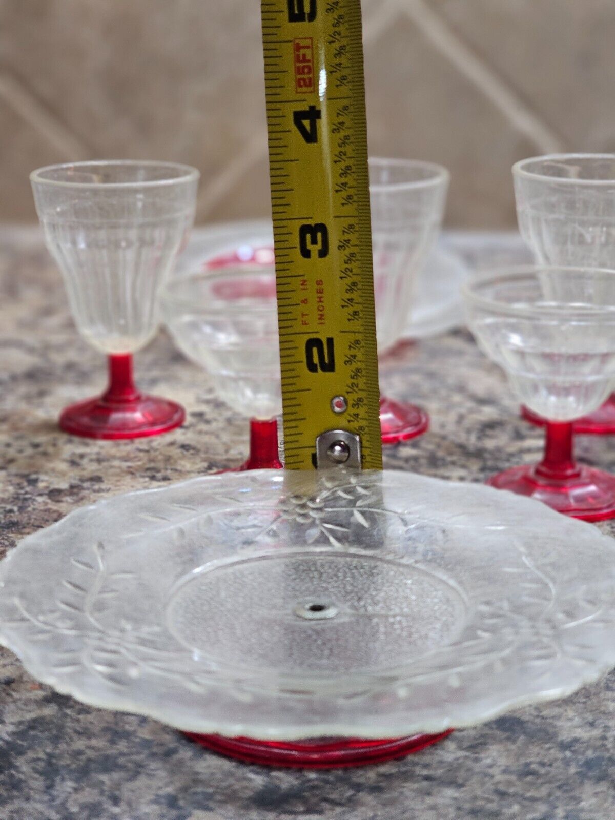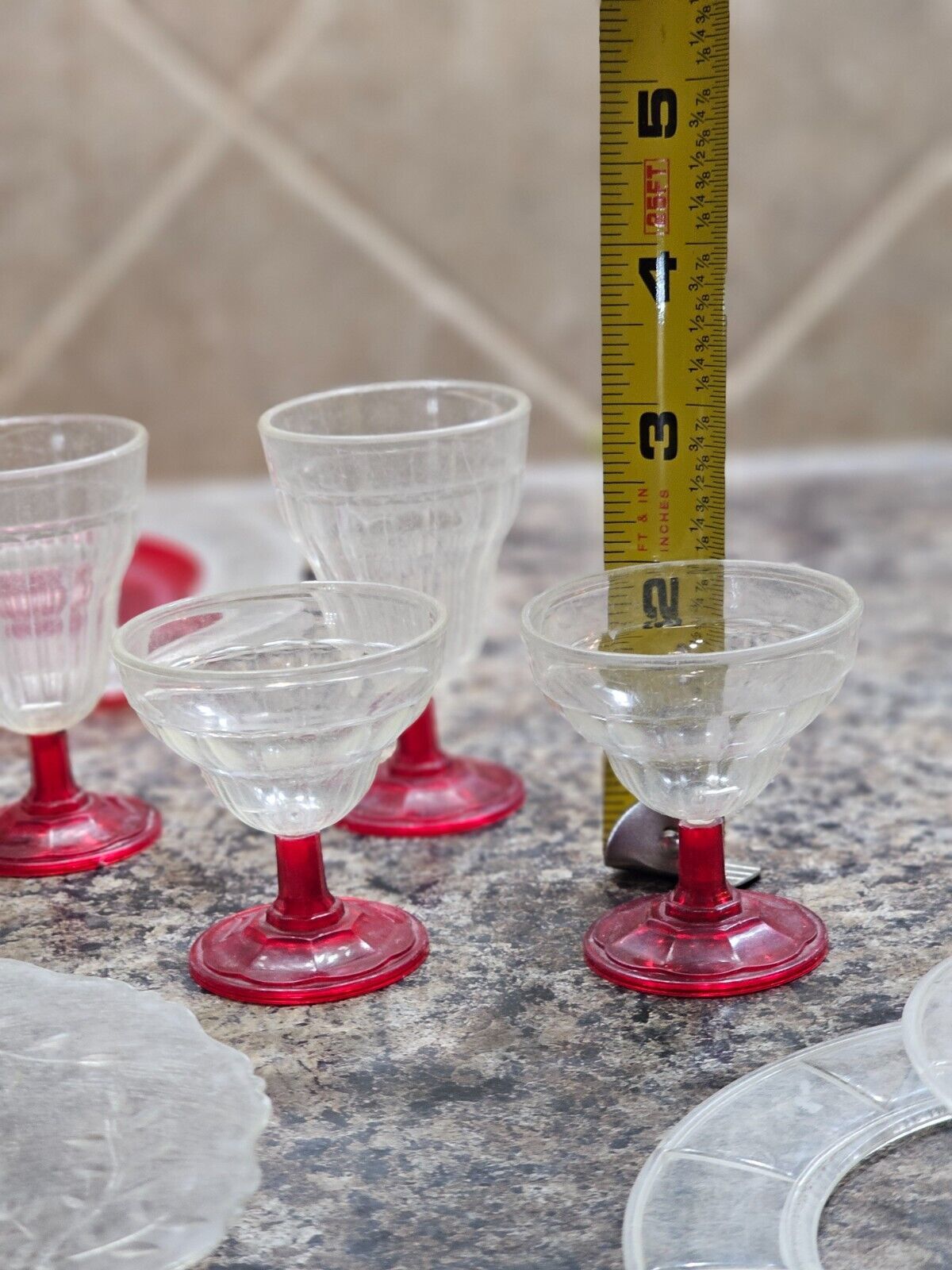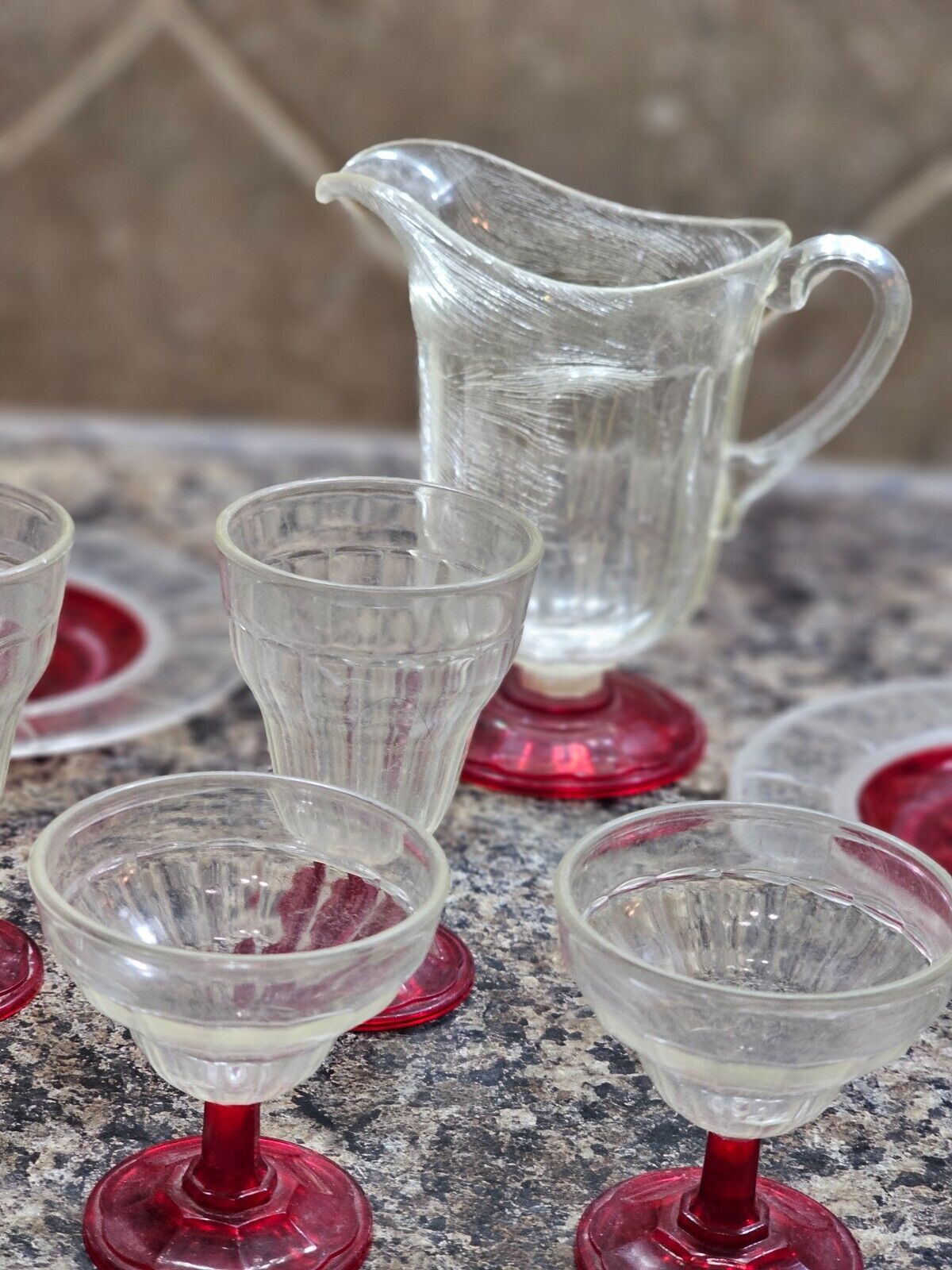 Vtg 16pc Banner USA Child's Plastic Red Clear Dessert Play Set Pitcher, Dishes H2