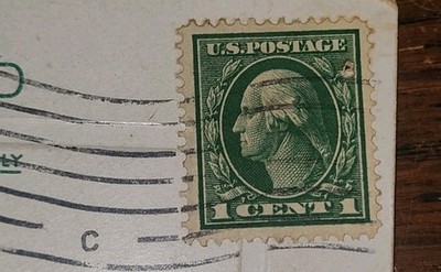 - Vtg 1914 Postcard Green Line 1 Cent Washington Stamp Ivy Clingeth I Cling To You