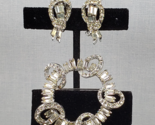 Vtg 1940's Art Deco Baguette Clear Crystal Rhinestone Brooch Clip On Earring Set