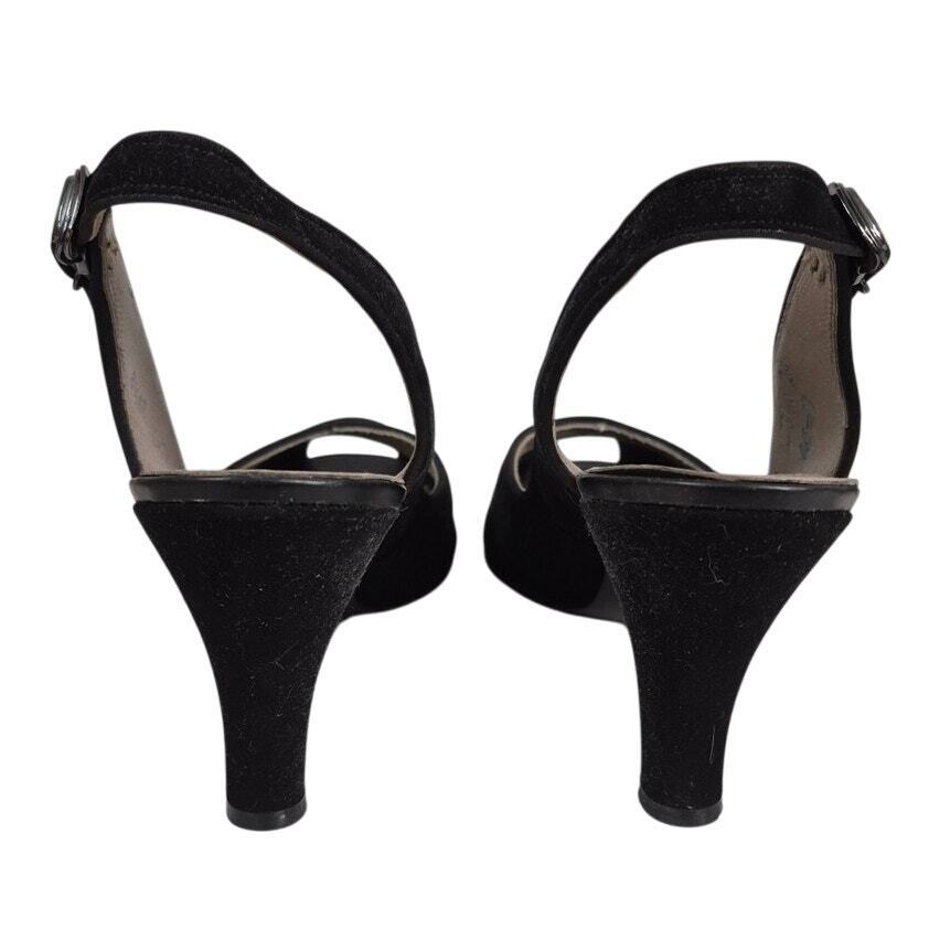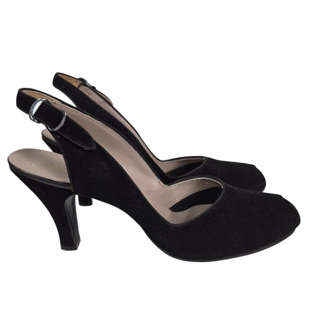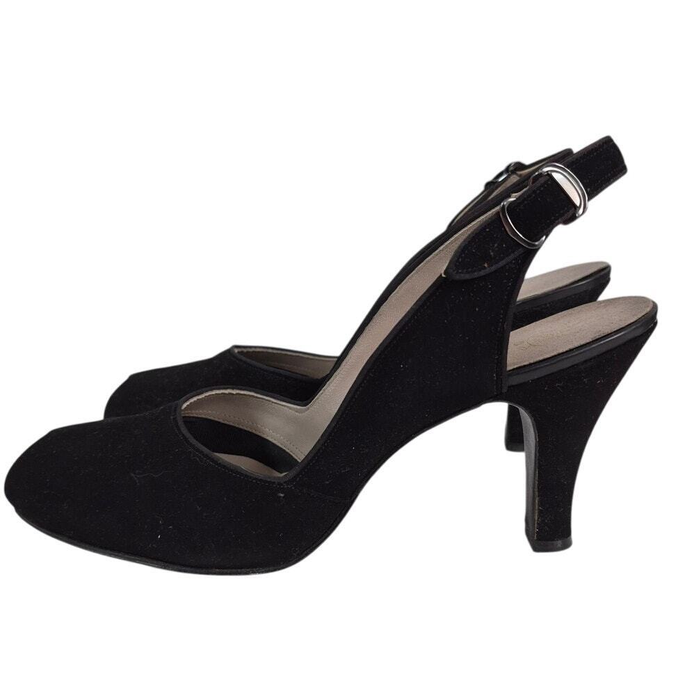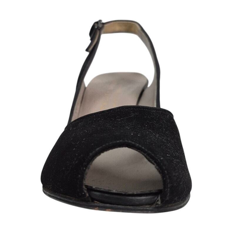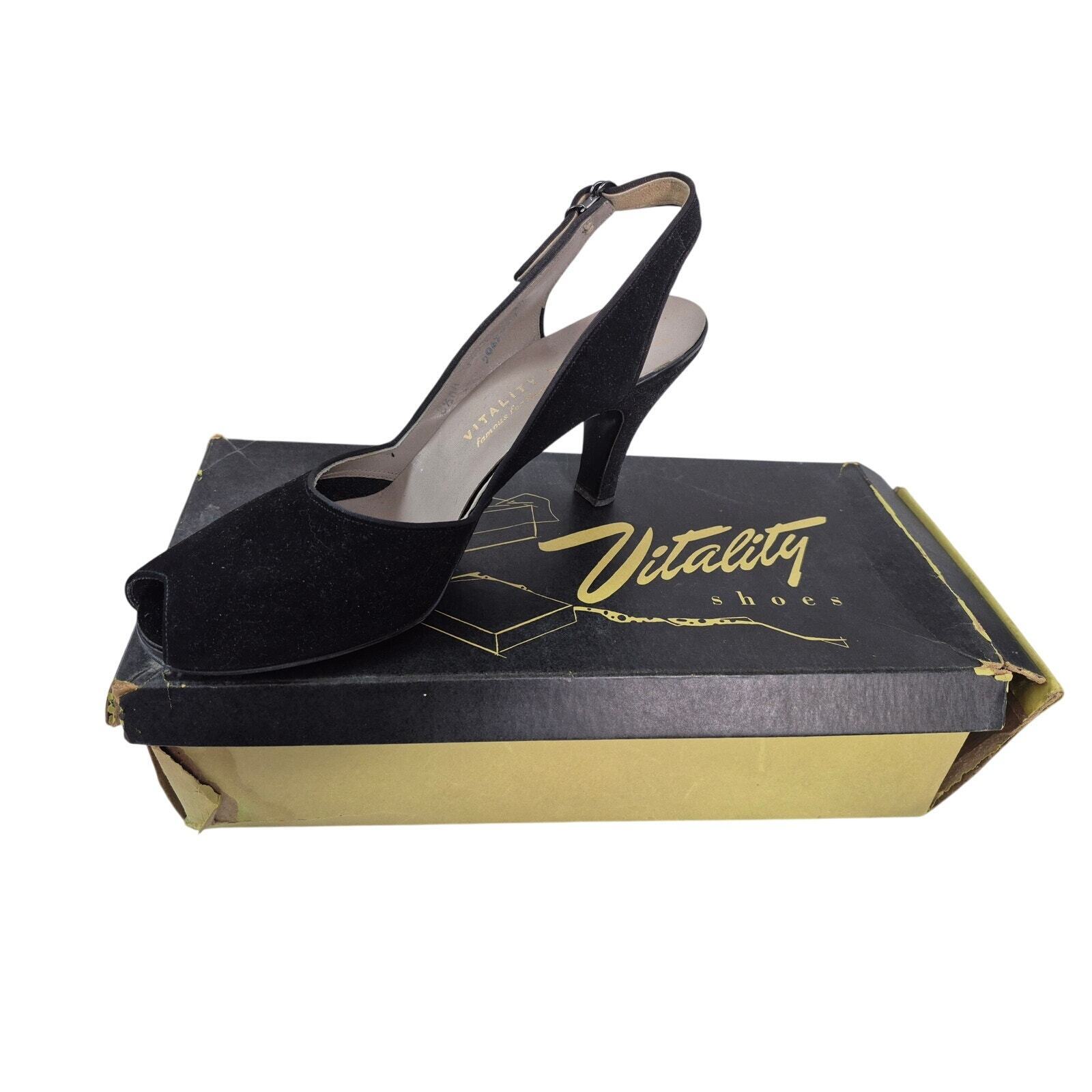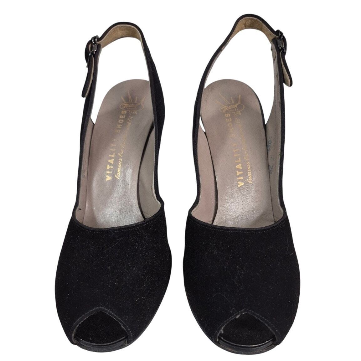 - Vtg 1940s 50s Vitality Shoes Maranda Black Suede Slingback Peep-Toe Pumps Sz 8.5
