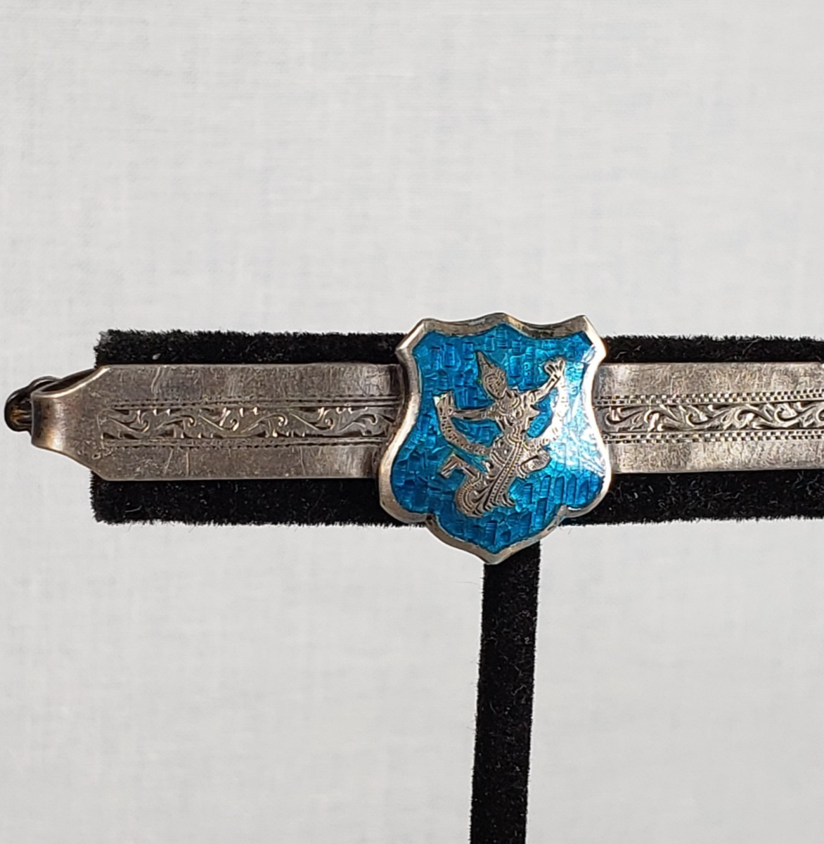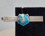 Vintage 1940's SIAM Enamel Teal Blue Shield Dancer Thailand Niello 925 Sterling Silver Tie Clip