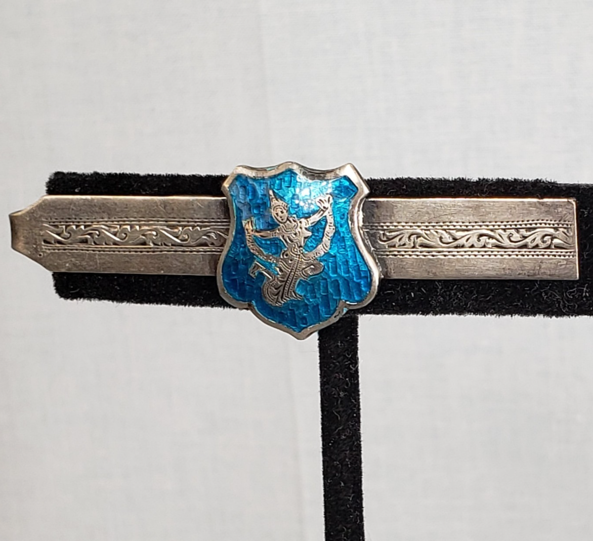 - Vtg 1940s SIAM Enamel Shield Dancer Thailand Niello 925 Sterling Silver Tie Clip
