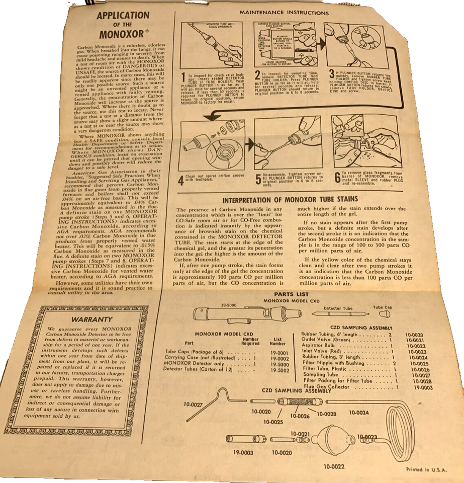 - Vtg. 1950's Monoxor Carbon Monoxide Detector Model CXD w Case [e-10]