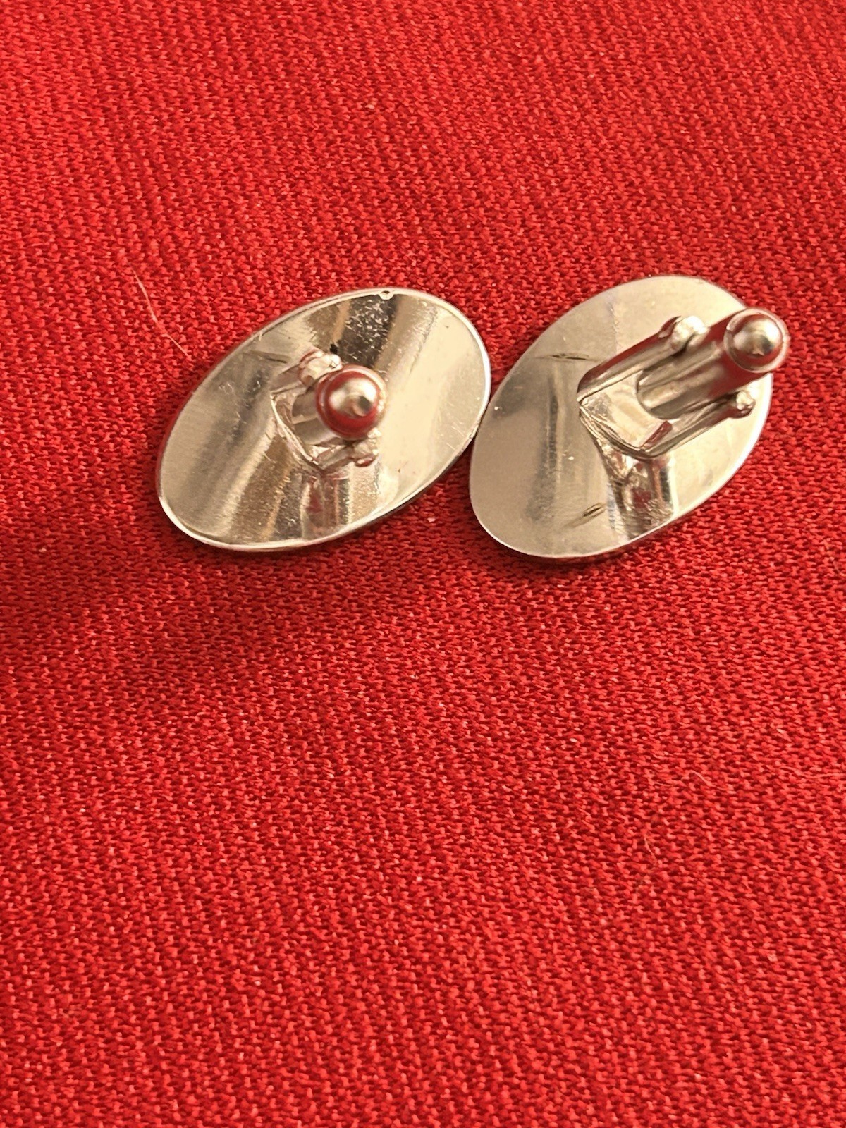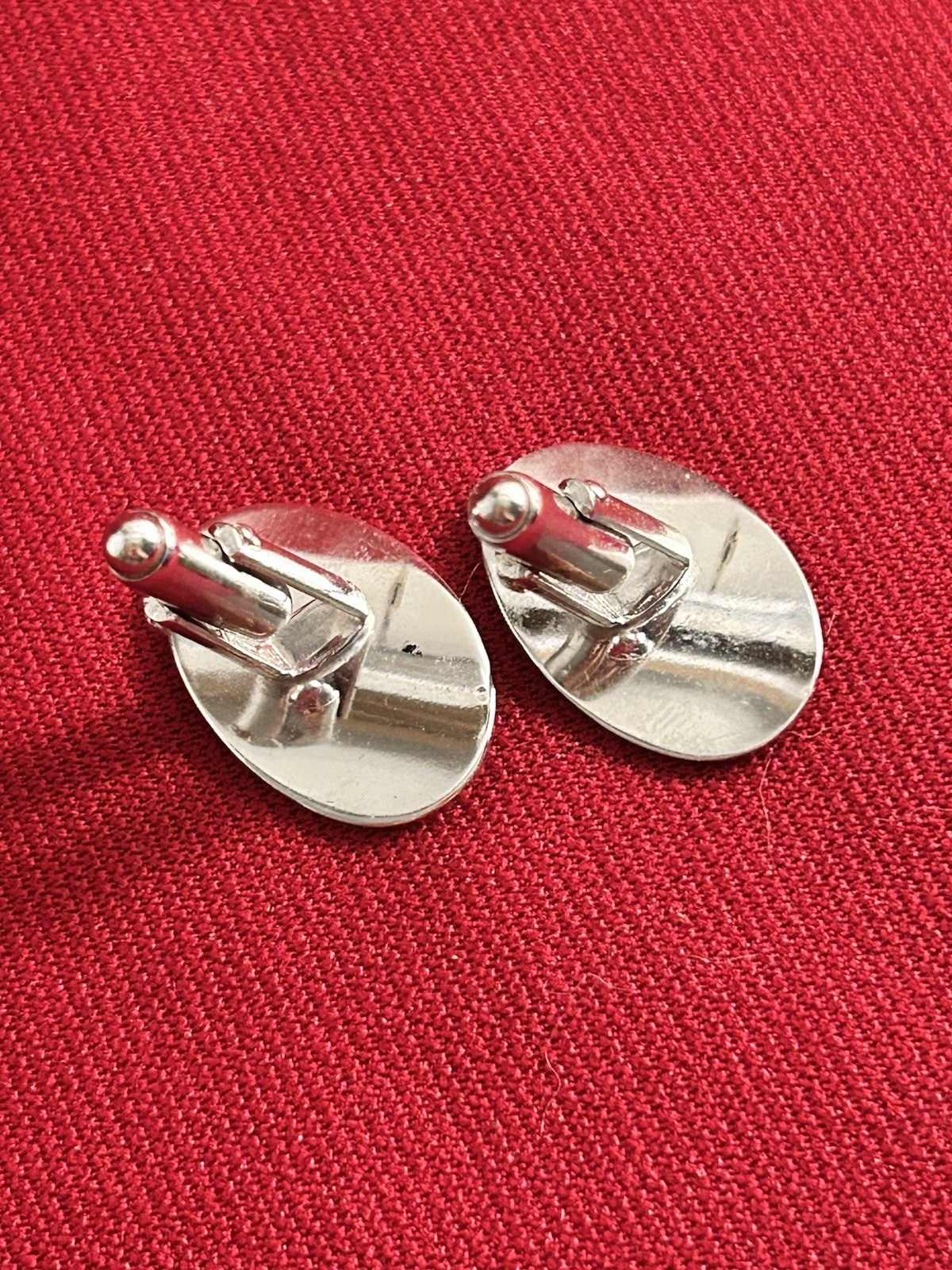 - Vtg 1950s Anson Silver tone Oval Etched Cufflinks (J405)