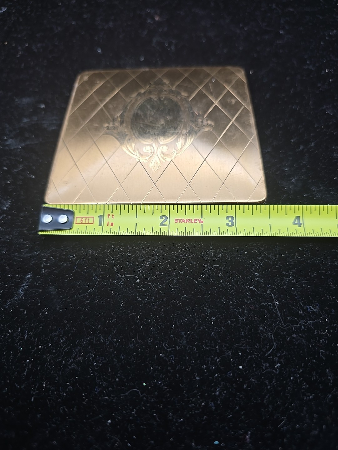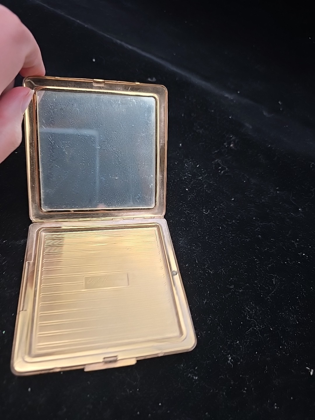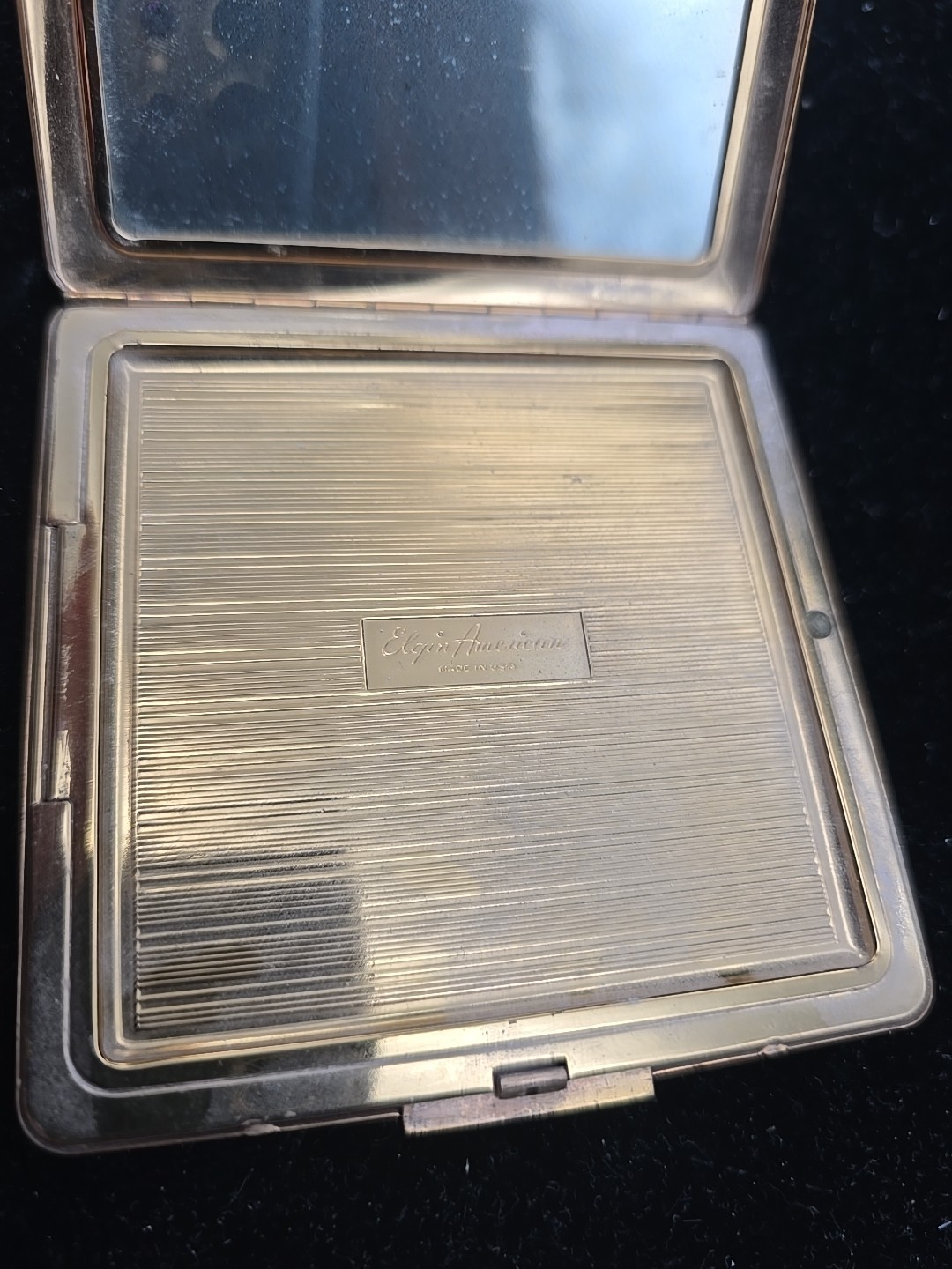 - Vtg 1950s Elgin American Gold Tone Powder Compact Etched Top Case Square Brass