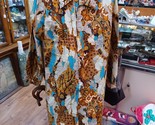 Vtg 1960-670s Anne Garson Zippered Shift Dress Belt Blue Gold Print With Tags