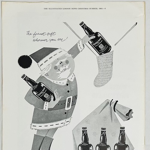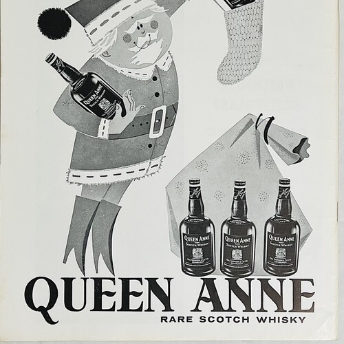 - Vtg 1960's Queen Anne Scotch Whisky Santa Claus Christmas Holiday Art Print Ad
