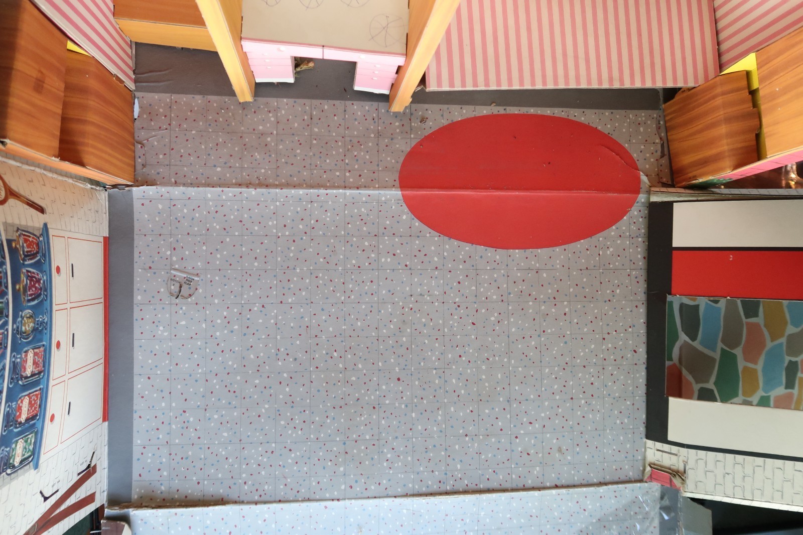 A rare find vintage cardboard Tammy dream doll house with a bunch of accessories included. Incomplete with clear wear and imperfections. You purchase it as is, it comes with all accessories pictured. Ping pong table TV Tables Jukebox etc.