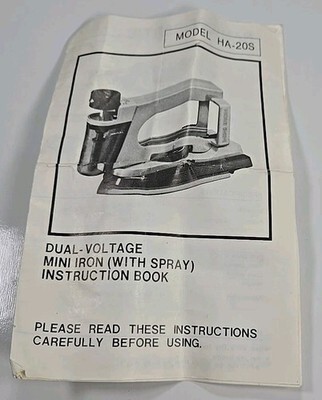 The VTG 1970s 1980s Ha Anna MINI TRAVEL IRON is a vintage iron designed for both 120V and 240V outlets. Perfect for camping and glamping, this compact iron is ideal for on-the-go styling. Its retro design and dual voltage make it a unique and practical collectible for those who appreciate vintage small appliances.