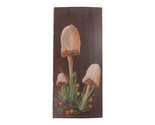 Vtg 1970s Hand Painted Wood Wall Panel Mushrooms & Orange Flowers Retro Kitsch