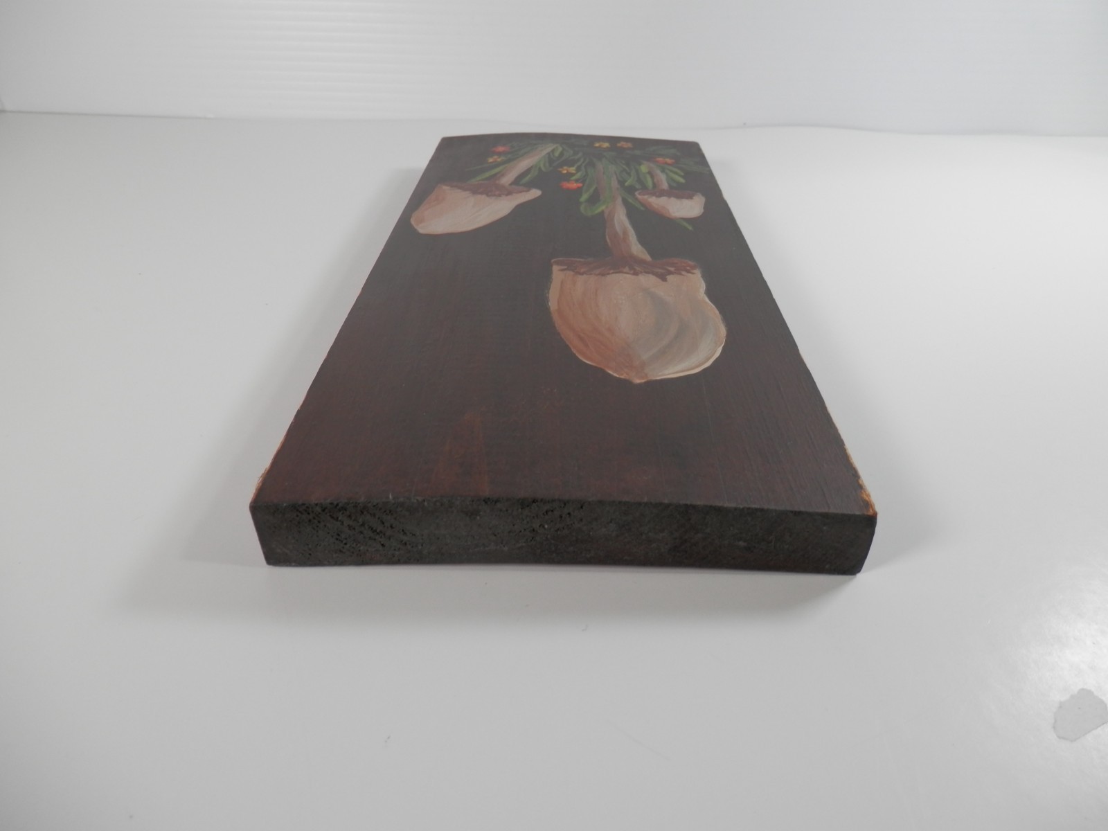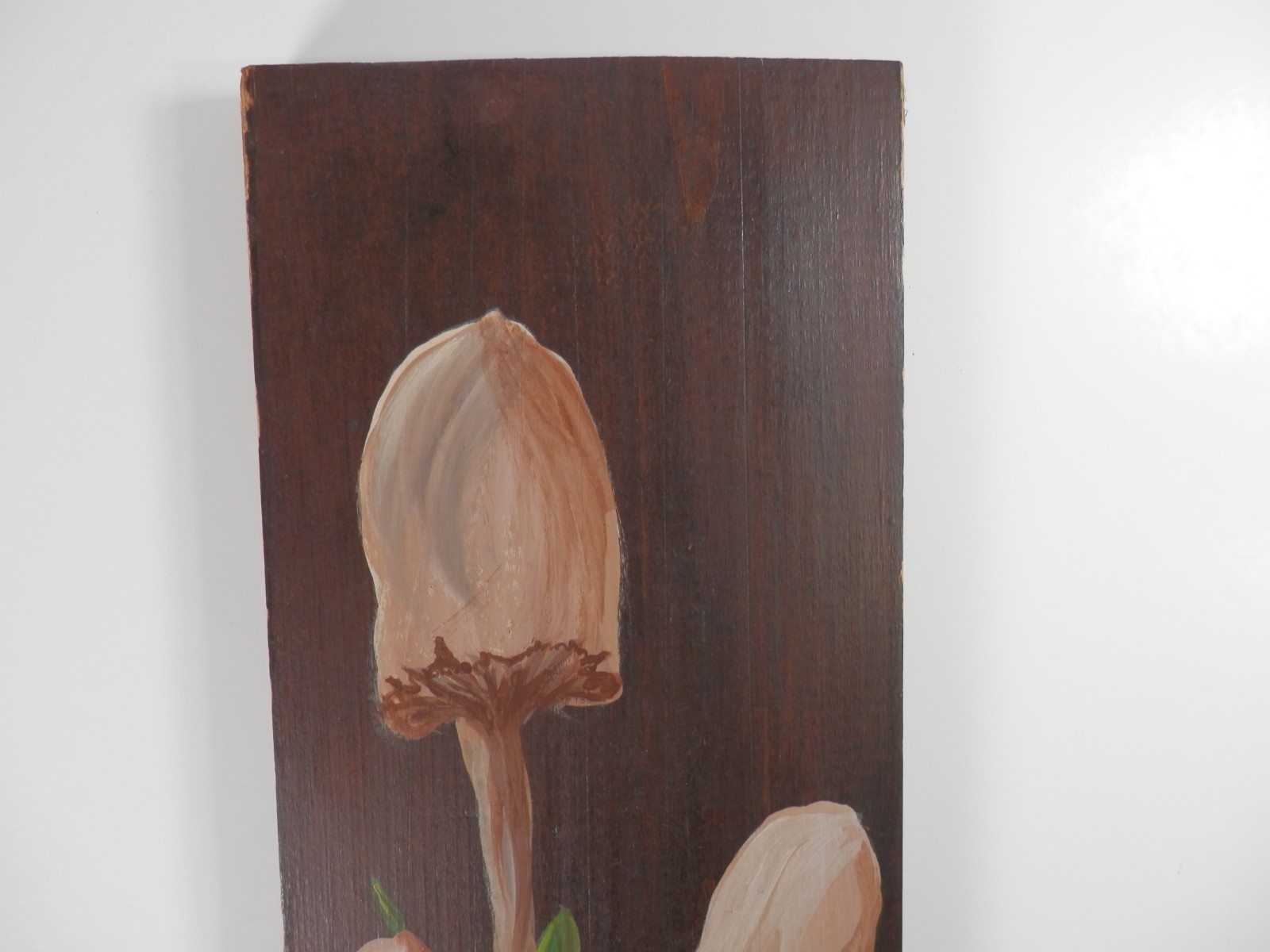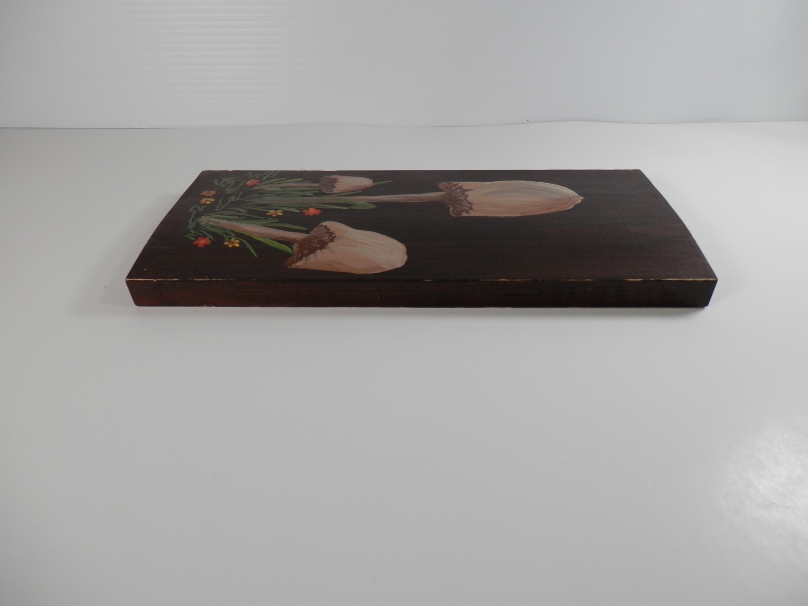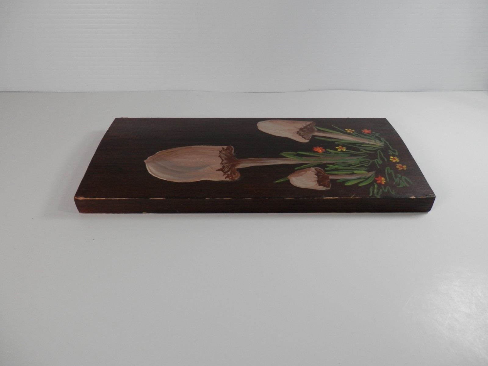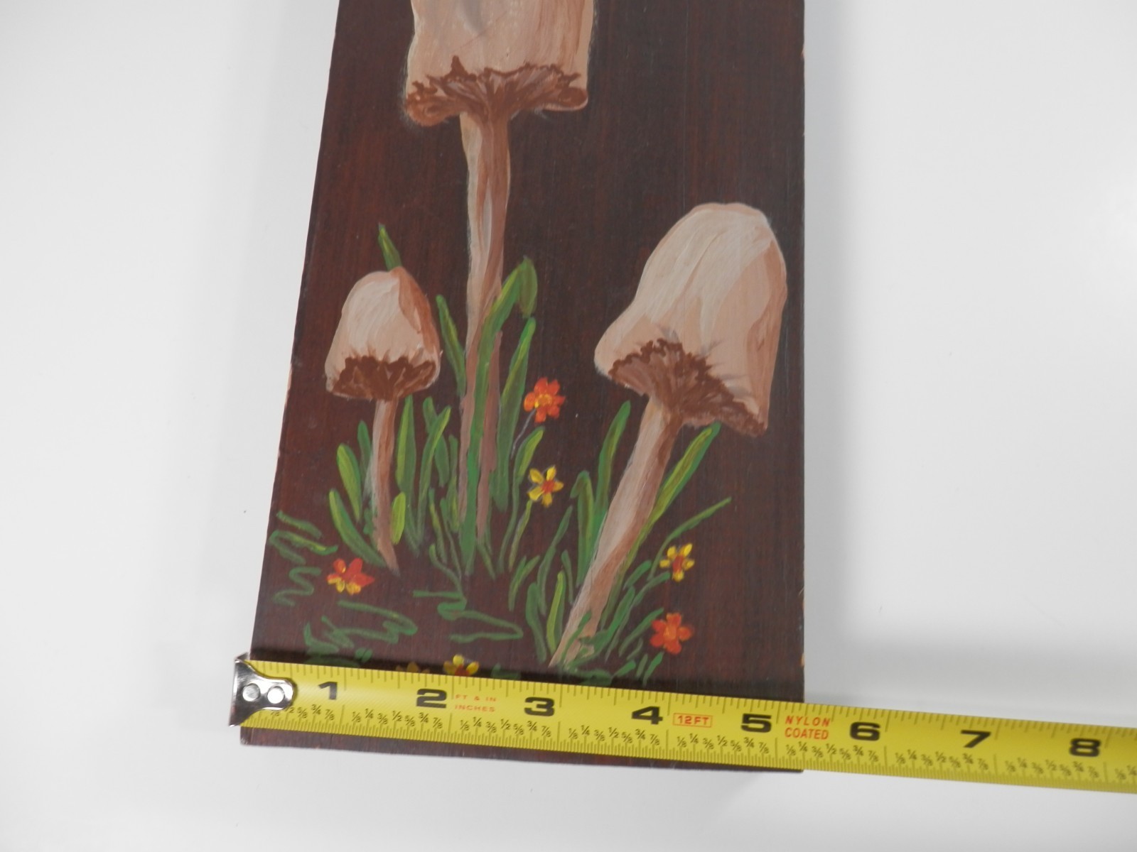 - Vtg 1970s Hand Painted Wood Wall Panel Mushrooms & Orange Flowers Retro Kitsch