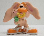 - Vtg 1983 W Berrie Orange Bunny Rabbit Holding Flowers PVC Figure Easter Portugal