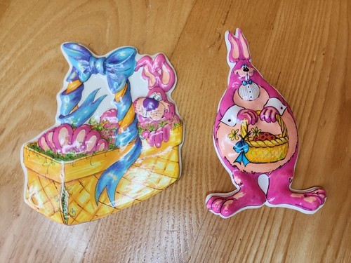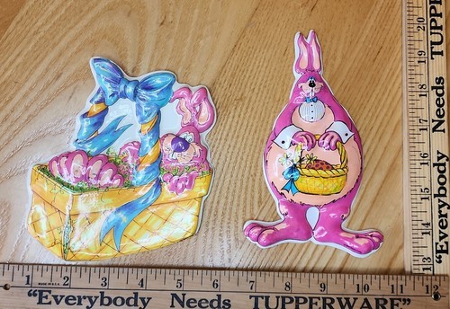 - VTG 1990s Lot of 2 Pink Bunny Rabbit Easter Cake Toppers POP TOPS BAKERY CRAFTS