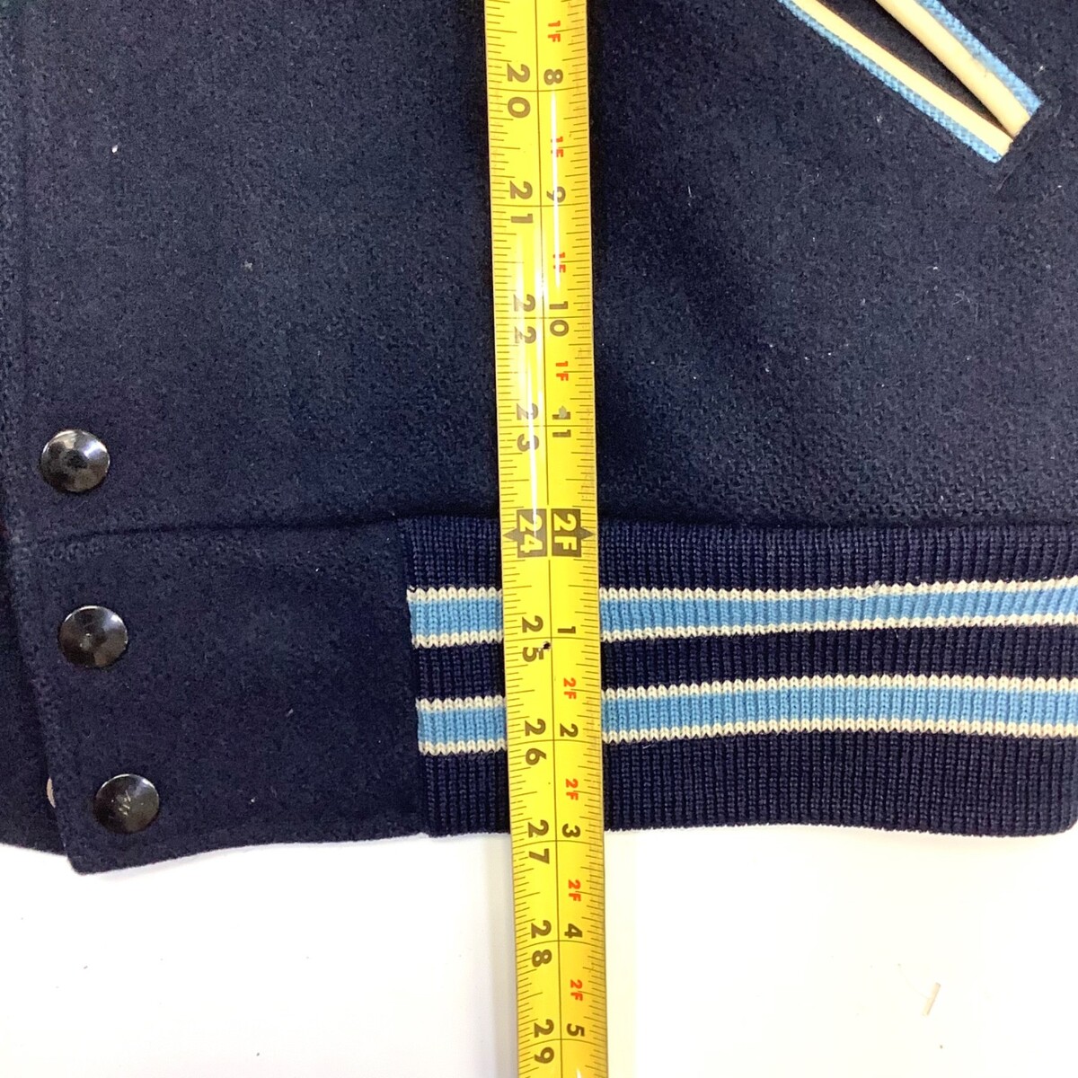 Vtg 1991 High School Varsity Wool Jacket Sports Gonzaga Prep Spokane WA Patches. Shows some minor wear, but really neat vintage athletic varsity jacket with lots of patches. Label says size 46. Please see all photos. Photos include measurements for armpit to armpit, and for top of shoulder to bottom of the jacket.