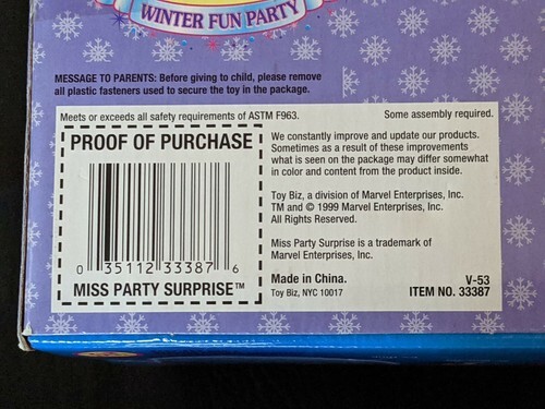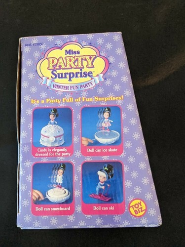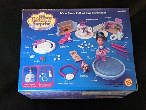 Up for sale is a new in box Vtg 1999 Miss Party Surprise Doll Set Winter Fun Party Cindy Toy Biz Skis.