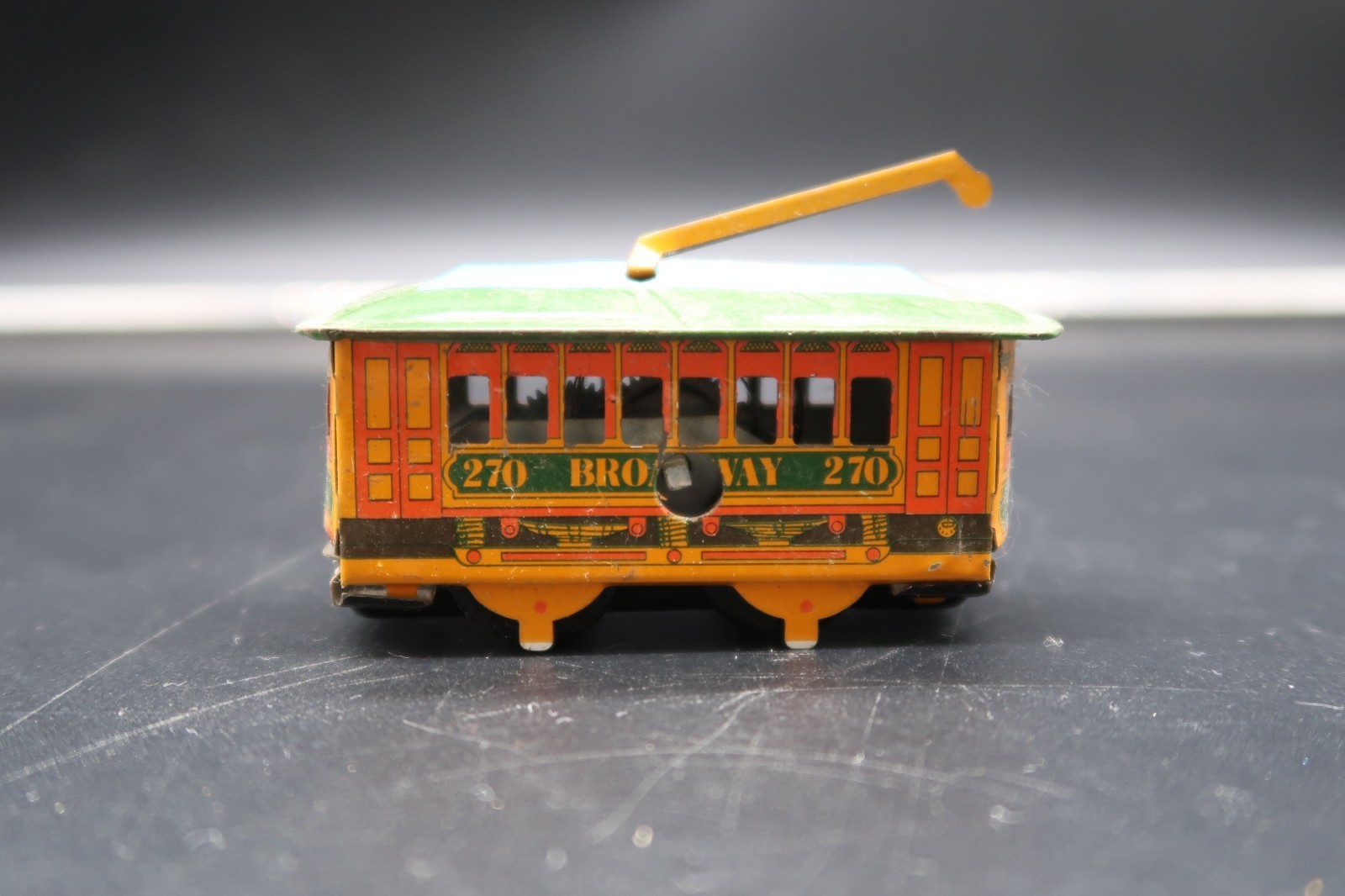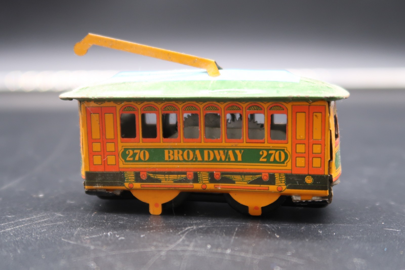 - Vtg 270 Broadway Tin Tram Trolly Train Wind-up Toy Decoration
