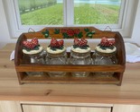 Vtg 3D Strawberry Wooden Spice Rack & 4 Glass Jars 80s 90s Kitchen Decor 10" L