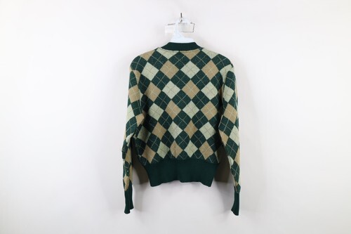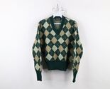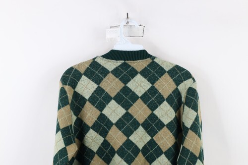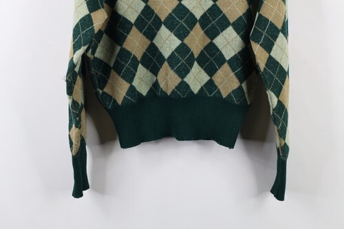 - Vtg 50s 60s Boys XL Distressed Wool Blend Argyle Diamond Knit V-Neck Sweater USA