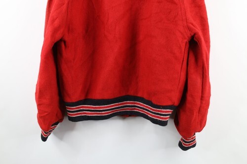Vtg 60s 70s Streetwear Mens 36 Distressed Striped Wool Varsity Jacket Red USA