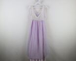 Vtg 60s 70s Womens Medium Baby Doll Chiffon Lace Flower Night Gown Purple USA