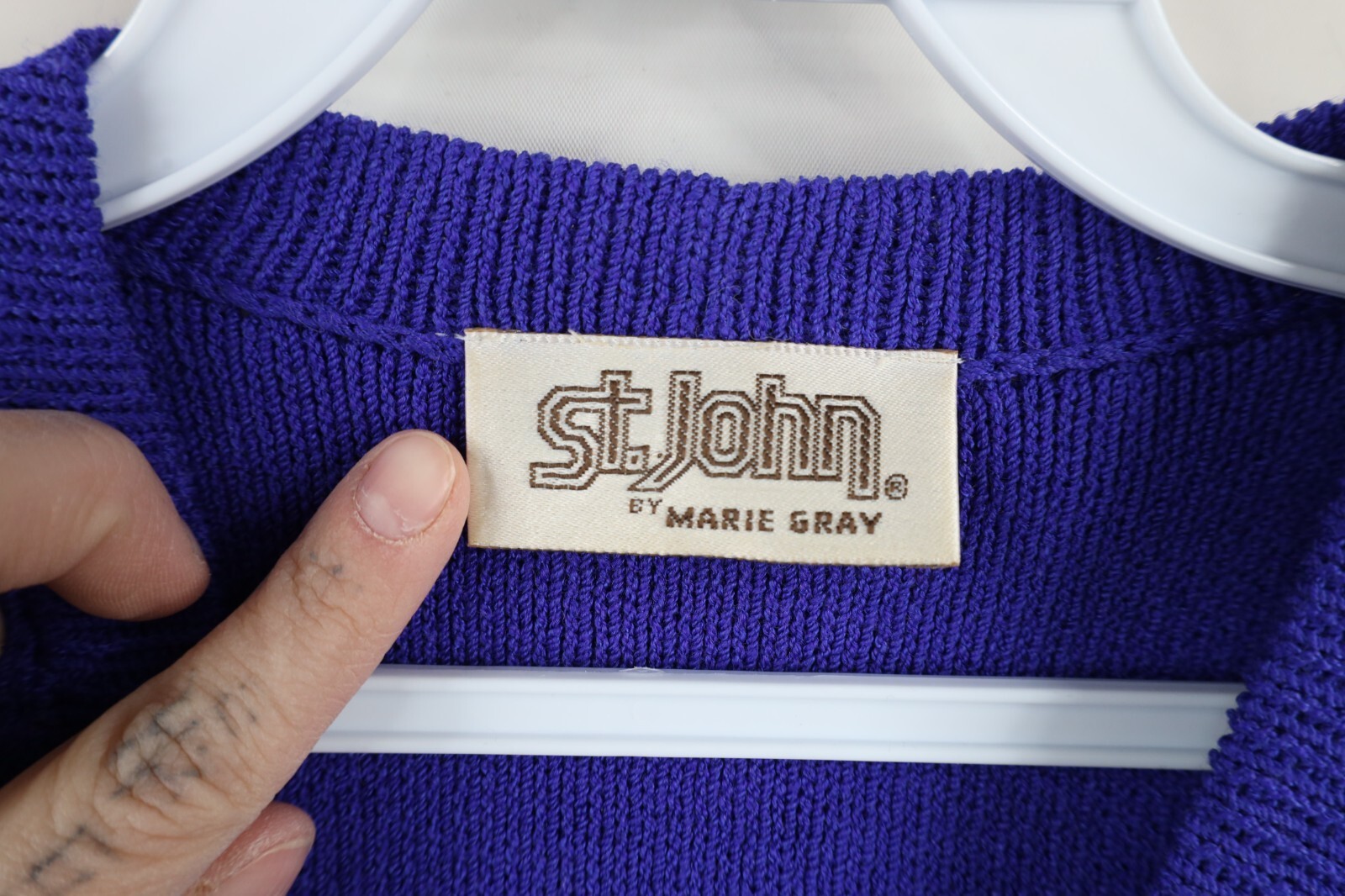 - Vtg 70s 80s St John Marie Gray Womens Size 6 Wool Knit Sweater Dress Purple USA