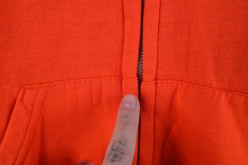 - Vtg 70s 80s Streetwear Mens M Flocked Fleece Lined Zip Hoodie Blaze Orange USA